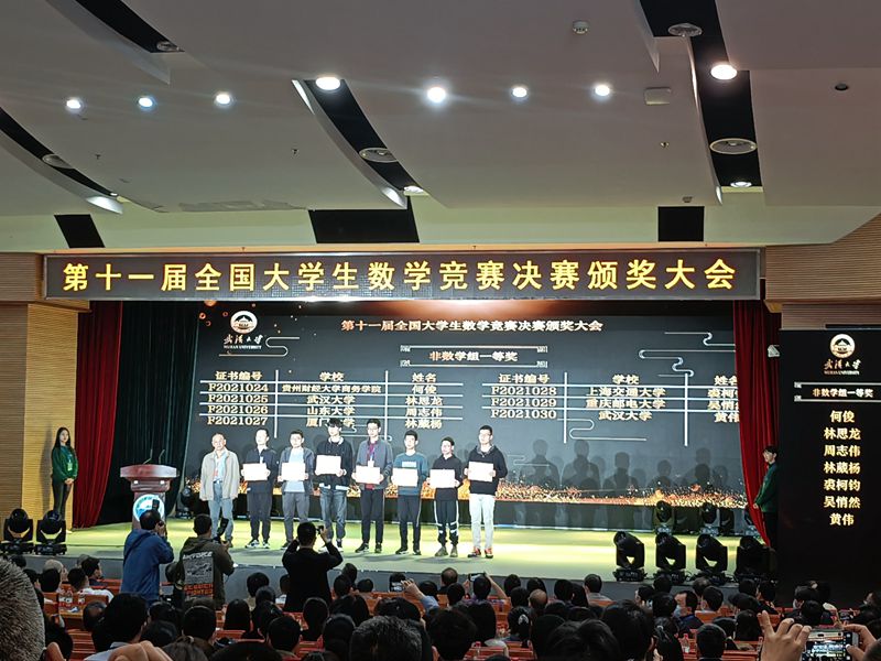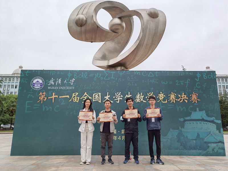 热烈祝贺我校学子在第十一届全国大学生数学竞赛中喜获佳绩!2021年4月17-19日,第十一届全国大学生数学竞赛决赛在武汉大学举行。在乐竞体育-中国一站式服务官网的精心组织和指导老师的悉心指导下,我校9名学生共获得一等奖2个,二等奖3个,三等奖4个。