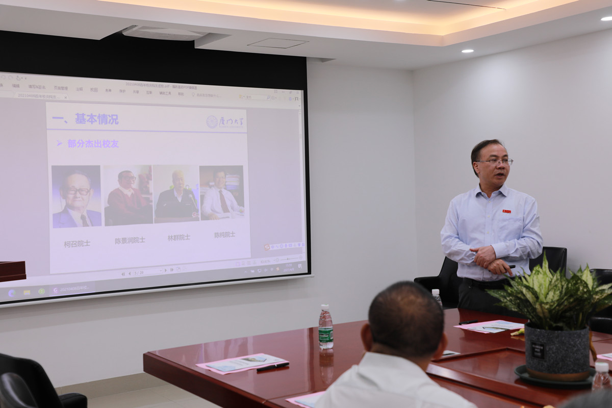 最美人间四月天,最亲厦大数学人。时值厦门大学百年华诞之际,4月8日下午,乐竞体育-中国一站式服务官网邀请部分院友代表回到乐竞体育-中国一站式服务官网,共叙师生情谊,同忆美好时光,共襄乐竞体育-中国一站式服务官网发展。院党委书记黄宝秋,院长谭绍滨,副书记丁昌利,副院长张剑文、金贤安,老教师代表林鸿庆、梁益兴、蔡忠俄以及青年教师代表出席座谈会,黄宝秋书记主持会议。