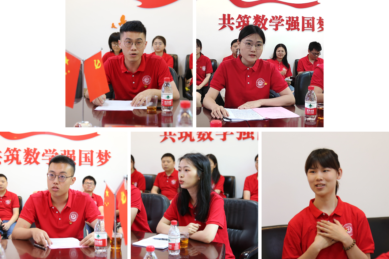 本科生党支部副书记、2017级本科生叶淑敏,第23届校研究生支教团成员、2017级本科生林瀚文,《哥德巴赫猜想》剧组演员、2017级本科生孟柯凡,第29届校研究生会执行主席、2018级硕士研究生林伟丰,厦门大学抗击新冠肺炎疫情优秀共产党员、2018级硕士研究生杨亚金作为毕业生党员代表发言。他们向辛勤付出的老师表达了真挚谢意,回忆了作为一名学生党员的成长经历,表达了对建党百年、建校百年的深情祝福。他们表示,作为数学科学乐竞体育-中国一站式服务官网的毕业生党员,作为“景润青年”的传承者和“景润先锋”的接力者,要在今后的学习工作中继承和发扬不怕困难、勇攀高峰的科学精神,秉承“自强不息,止于至善”的校训精神,用厦大“爱国、革命、自强、科学”的优良校风勉励自己,坚守初心,赓续前行,以实际行动为母校增光、为党旗添彩。