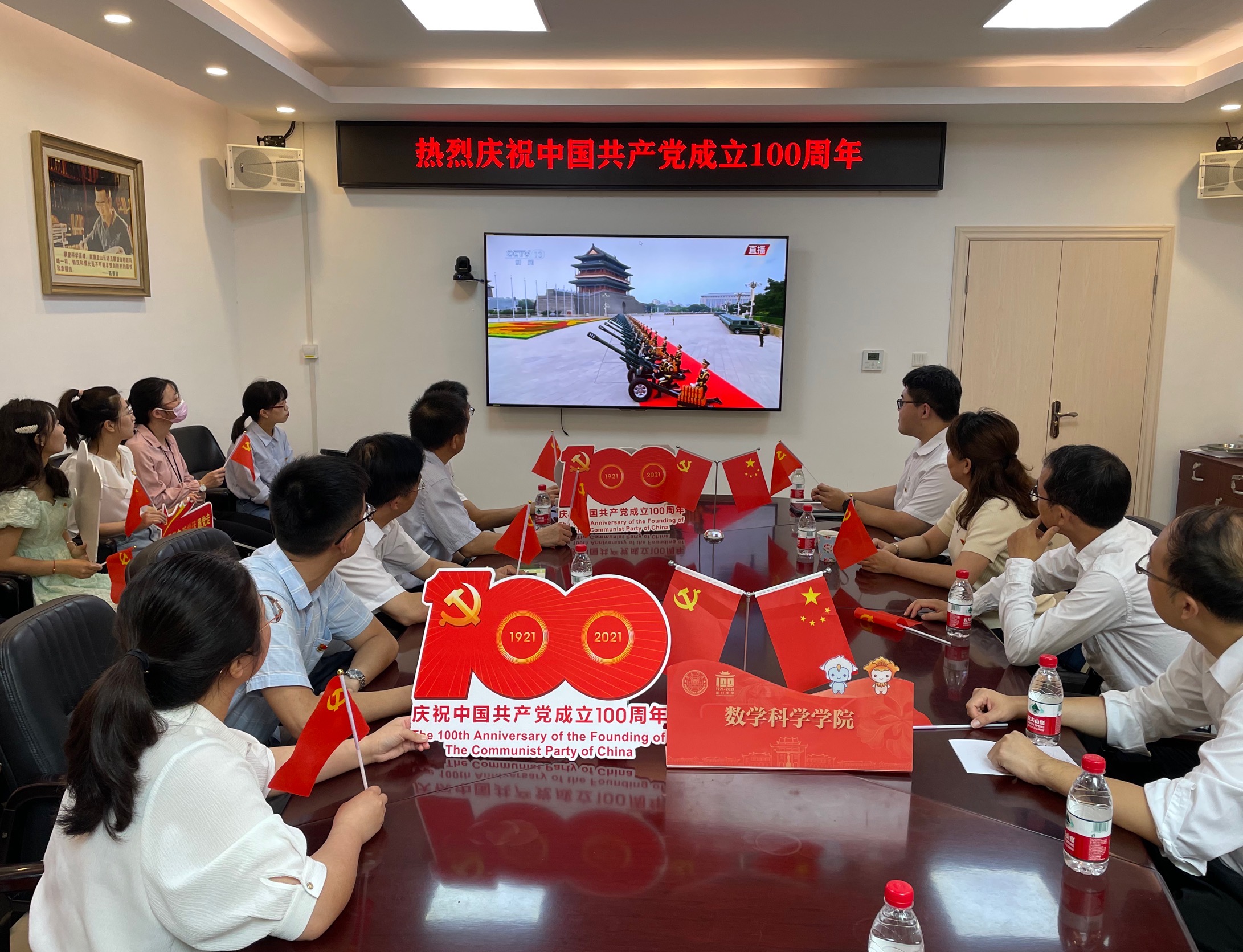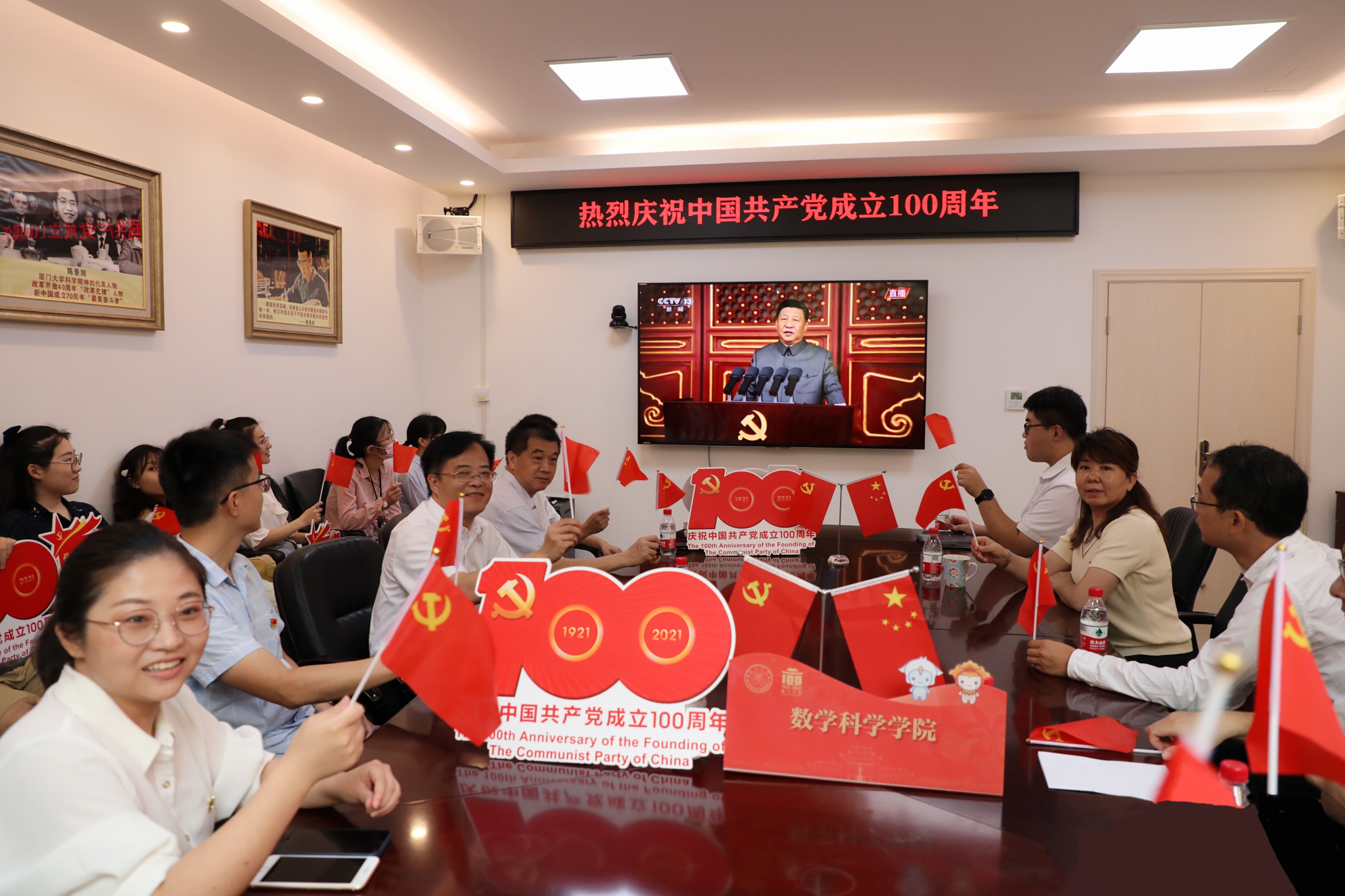 7月1日上午8时,庆祝中国共产党成立100周年大会在北京天安门广场隆重举行。中共中央总书记、国家主席、中央军委主席习近平发表重要讲话。数学科学乐竞体育-中国一站式服务官网党委组织师生通过电视、网络、手机直播等多种形式收听收看大会盛况,学习领会习近平总书记在庆祝大会上的重要讲话精神,共同回顾中国共产党同人民风雨同舟、生死与共,从胜利走向胜利的伟大征程,共同感悟中国共产党的百年辉煌成就和宝贵经验,激励和动员全院师生更加紧密地团结在以习近平同志为核心的党中央周围,在新百年新征程中奋勇前进。大家纷纷表示,要自觉弘扬伟大建党精神,砥砺初心,践行使命,不负时代,不负人民,为全面建成社会主义现代化强国、实现中华民族伟大复兴的中国梦贡献厦大数学人的力量。
