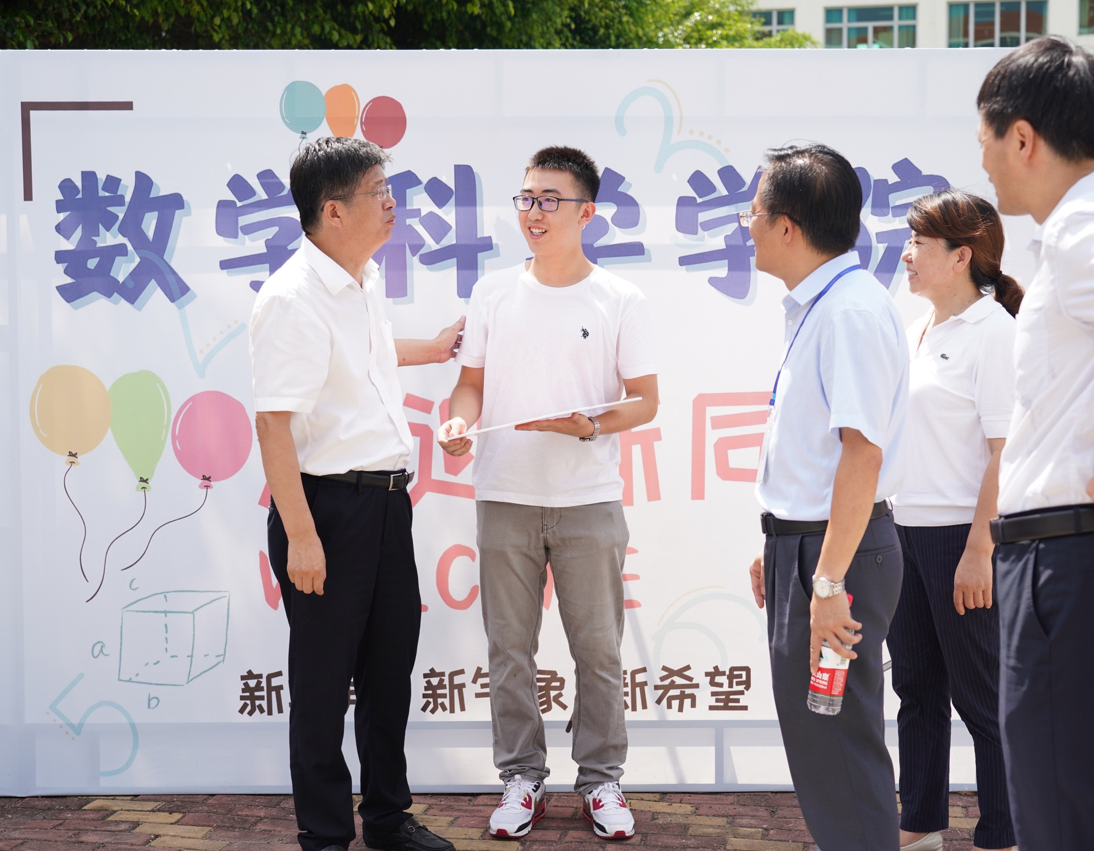 9月8日,校党委书记张彦,党委副书记徐进功带队检查乐竞体育-中国一站式服务官网迎新布置情况,仔细询问了乐竞体育-中国一站式服务官网的准备工作、新生资料袋、新生入学教育安排情况,认真翻阅了新生大礼包中以陈景润作为封面人物的迎新刊物《数学人》,对乐竞体育-中国一站式服务官网各项工作做好了充分准备表示肯定。