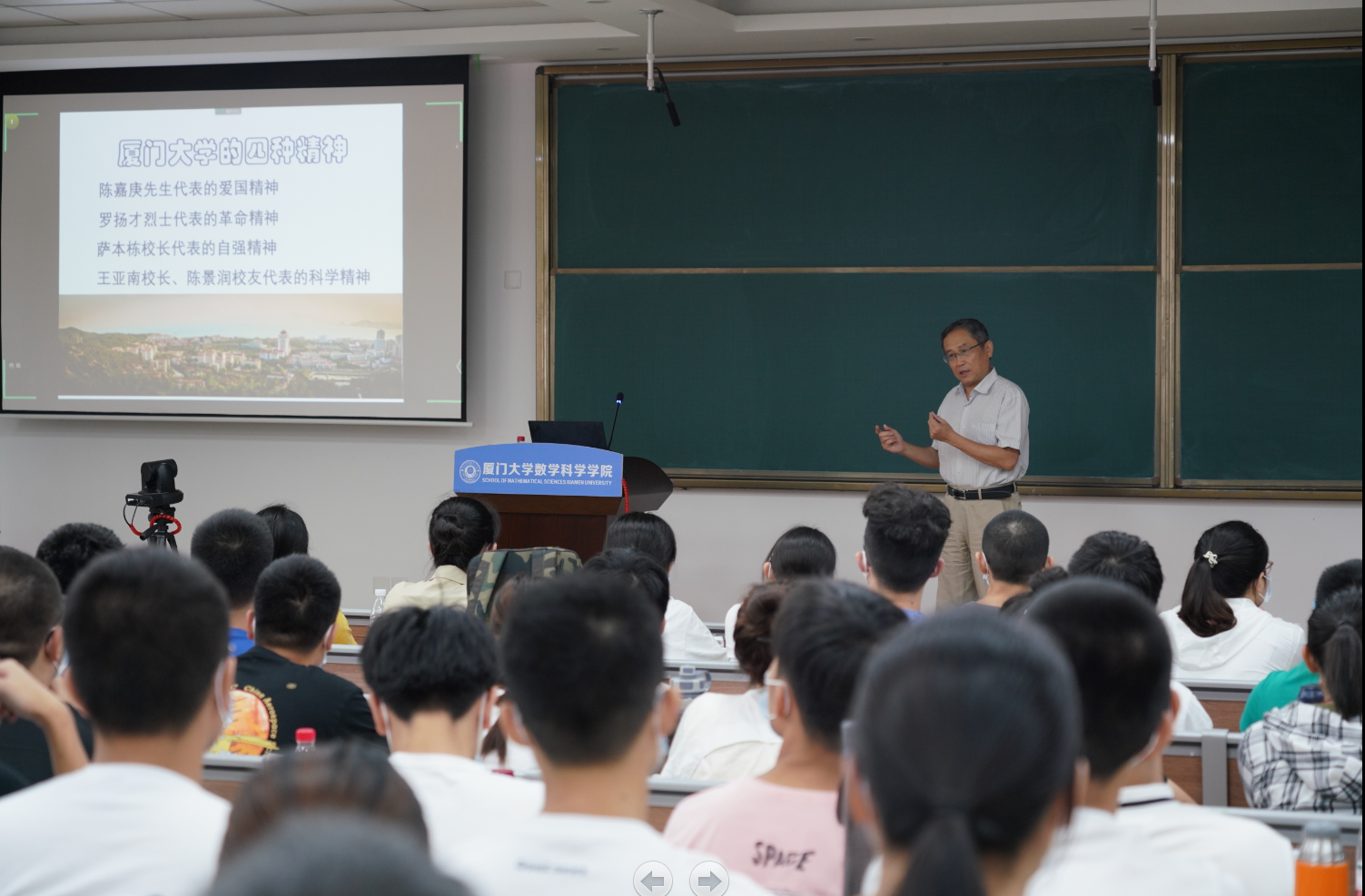 9月12日上午,“陈景润的传奇人生和精神魅力”专题讲座在海韵园实验楼105、106报告厅同时进行。厦门大学“四种精神”宣讲团成员、数学科学乐竞体育-中国一站式服务官网林亚南教授为数学科学乐竞体育-中国一站式服务官网2021级全体新生讲述景润精神。乐竞体育-中国一站式服务官网党委副书记丁昌利,团委书记于正伟,团委副书记陈淑铌,辅导员华盈鑫参加讲座。