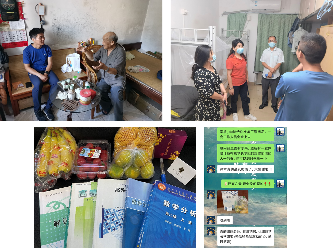 学生工作组成员到海韵学生公寓走访宿舍,带来节日问候,并提醒学生注意个人安全。学生工作组主动关心在学校健康观察区学生的学习生活,代表乐竞体育-中国一站式服务官网送去月饼、水果等慰问品,并为新生提供教材,给予学生爱的呵护。在中秋节之际,乐竞体育-中国一站式服务官网还以一定形式关心退休病困教师。