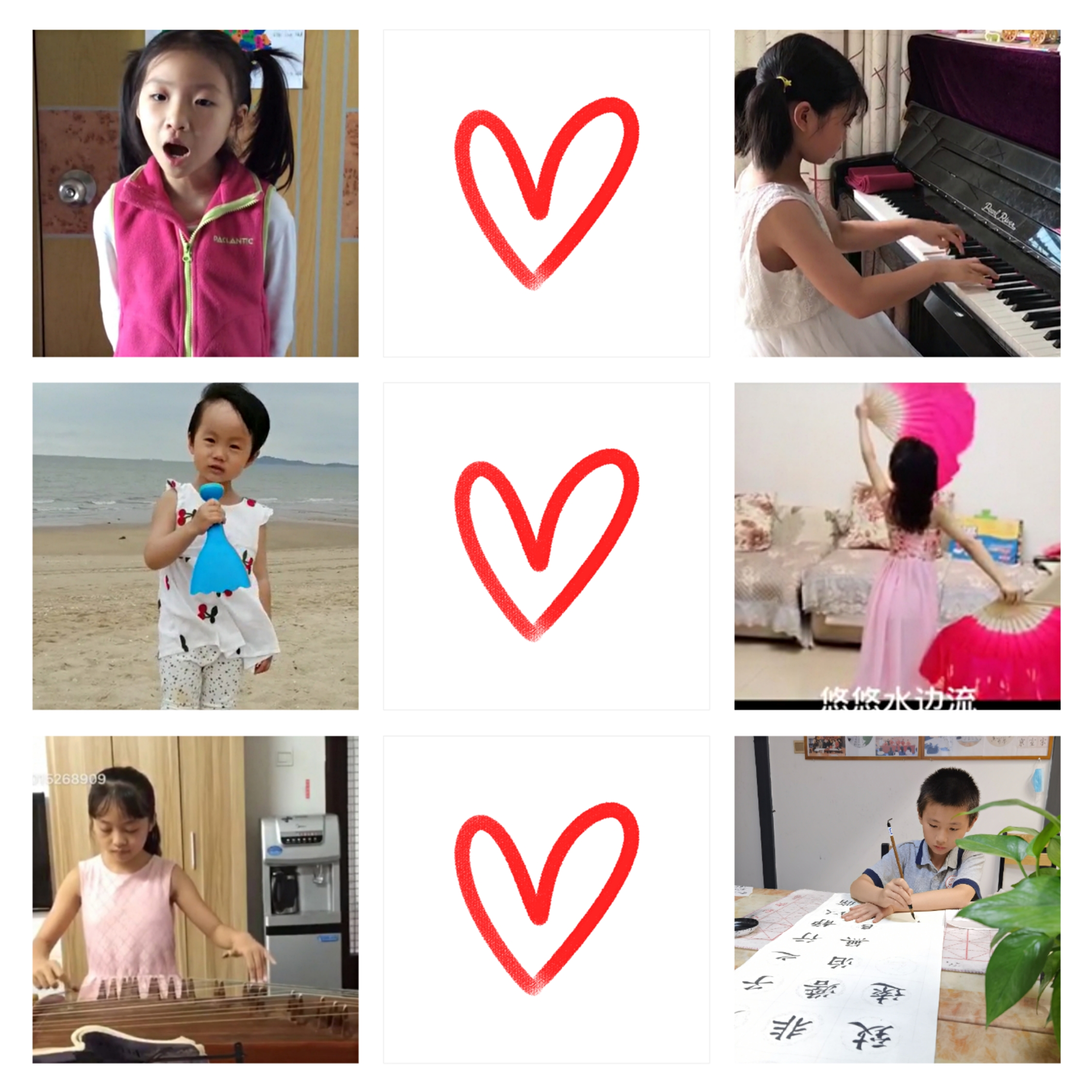让我们来看看可爱的“数二代”宝贝们的展示吧!琴弹得更好了,舞姿更美了,歌声更优美了,好动的小男孩练起了书法,看来疫情期间宅家宅出了新高度。英语达人乔智小朋友的英语动画片配音天衣无缝,这是怎么做到的呢?在国外的小弟弟居然用流利的英语给大家介绍他的玩具汽车。穿着居家服的小帅哥给大家讲起了米小圈的故事,教授找来书核对还真是一字不差。诚哥玩通了十几种异形魔方,还自学编程动态演示二次曲线族,教授说这个可以,有我院特色。不到三岁的牙牙小朋友能认字说出社会主义核心价值观。这是宅家宅出了新境界吗?还有姐妹俩背唐诗、兄妹俩搭乐高立交桥、兄弟俩比赛搭彩色旋转大楼,这是宅家宅出了亲情高温度。呵,这是少林寺来的小子吗?居然冲进卧室来个徒手空翻!还有个小淑女是黄蓉?在芙蓉楼边上的单杆练倒挂!一岁半的小宝宝也会翻跟头?四岁小朋友跳起了大绳,小胳膊小腿与这又长又粗的绳子是怎么协调的呢?菲菲大姐姐居然敢乘坐热气球,真的飞起来了!这是宅家宅出十八班武艺啊!还有灌篮高手,教折纸的、教画画的,追着鸽子蹒跚学步的小宝贝,刚刚学会自己吃瓜的小宝宝。。。家长们看得捧腹大笑,大家聊起了孩子教育,还聊起了十年前的三月风采曾经轰动一时的反串节目《回娘家》,翻出了老照片。。。