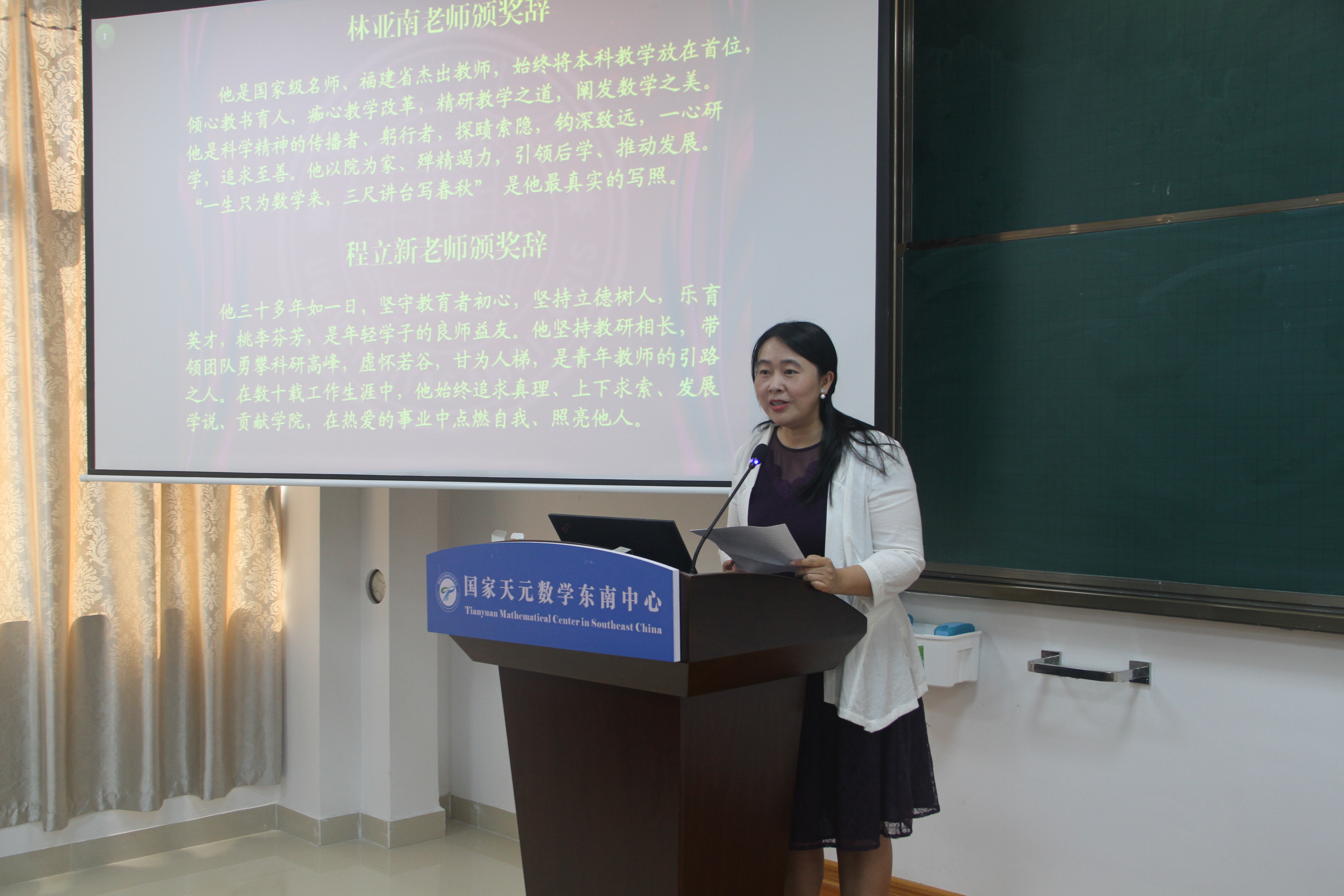 会上,首先由刘宁副书记代表乐竞体育-中国一站式服务官网宣读了本年度“白鹭”奖教金获奖名单,他们是:“白鹭”特别贡献奖获得者林亚南老师,“白鹭”奖教金获得者程立新老师、杜妮老师、白正简老师、陈淑铌老师、郭淑敏老师、陈李媛老师。会上还专门为每位获奖老师宣读了颁奖辞,黄宝秋书记和谭绍滨院长共同为获得2019年度“白鹭”奖教金获得者颁发荣誉证书。黄宝秋在讲话中指出,作为乐竞体育-中国一站式服务官网师德师风建设的重要举措之一,设立“白鹭”奖教金,既是对辛勤执教、潜心科研的教师和勤勉工作的管理人员的鼓励,也是在乐竞体育-中国一站式服务官网中树立起工作榜样,勉励全体教职员工以一流的状态努力为推动乐竞体育-中国一站式服务官网事业发展和“双一流”建设添砖加瓦。