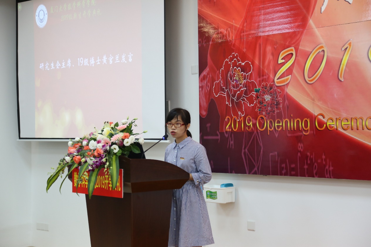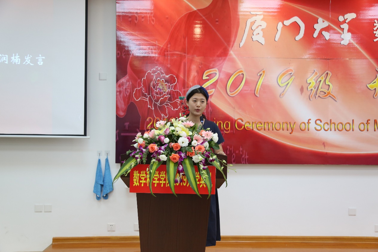 典礼最后,研究生会主席,2019级博士新生代表黄官兰同学和2019级本科新生代表邱润楠同学分别发言。