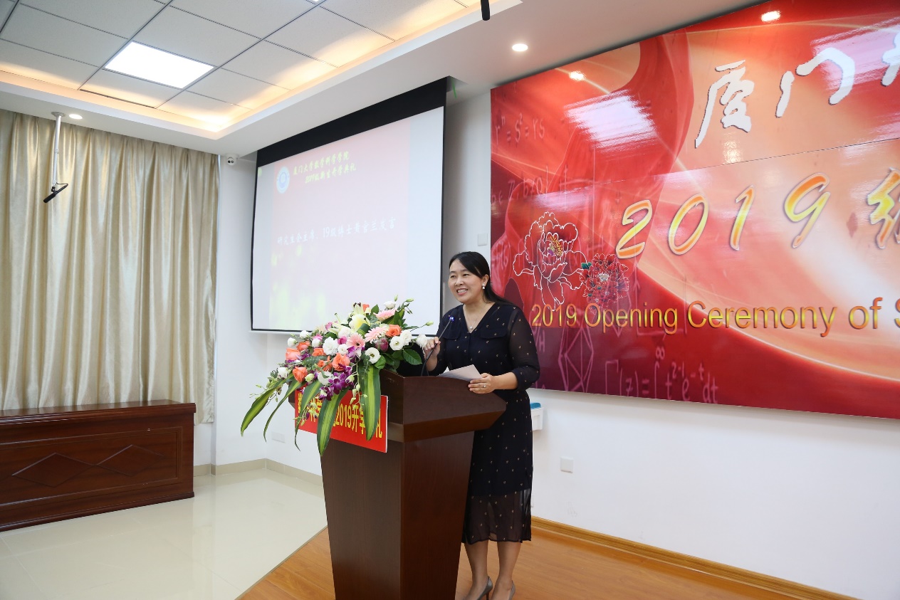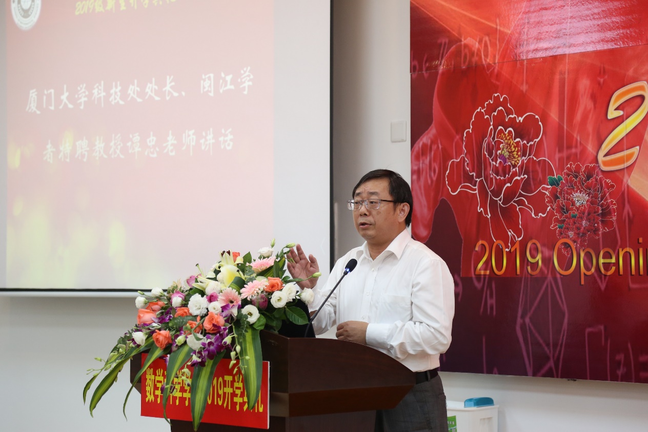9月12日下午,乐竞体育-中国一站式服务官网2019级开学典礼在海韵实验楼106报告厅隆重举行。厦门大学校长助理、数学科学乐竞体育-中国一站式服务官网院长谭绍滨,乐竞体育-中国一站式服务官网党委书记黄宝秋,厦门大学科技处处长谭忠,乐竞体育-中国一站式服务官网学术委员会主席程立新,乐竞体育-中国一站式服务官网党委副书记陈国强、刘宁,副院长邱建贤、金贤安,数学与应用数学系主任夏超、副主任杜妮,概率与数理统计系副主任(主持工作)周达,2019级本科2班班主任贺飞,乐竞体育-中国一站式服务官网学生工作组全体成员以及乐竞体育-中国一站式服务官网部分党政管理人员参加开学典礼。典礼由党委副书记刘宁主持。