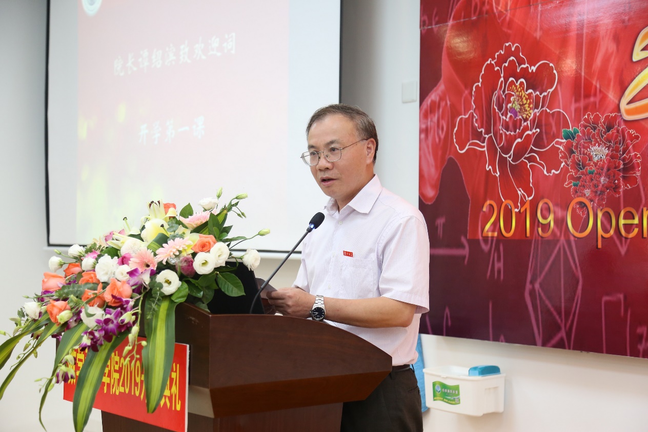 谭绍滨院长为2019级全体新生上开学第一课。为了让大家对乐竞体育-中国一站式服务官网有更全面的了解,院长向大家介绍了乐竞体育-中国一站式服务官网的底蕴、现状和人才培养等内容。他引用培根、高斯、爱因斯坦等著名科学家的语录和近些年的国情与相关政策,向大家展示了数学这个基础学科和拥有良好数学基础的重要性,希望大家能充分认识数学的重要性,坚信选择数学的正确性,规划好大学生活,既仰望星空又脚踏实地,做有理想有情怀有担当的追梦人。
