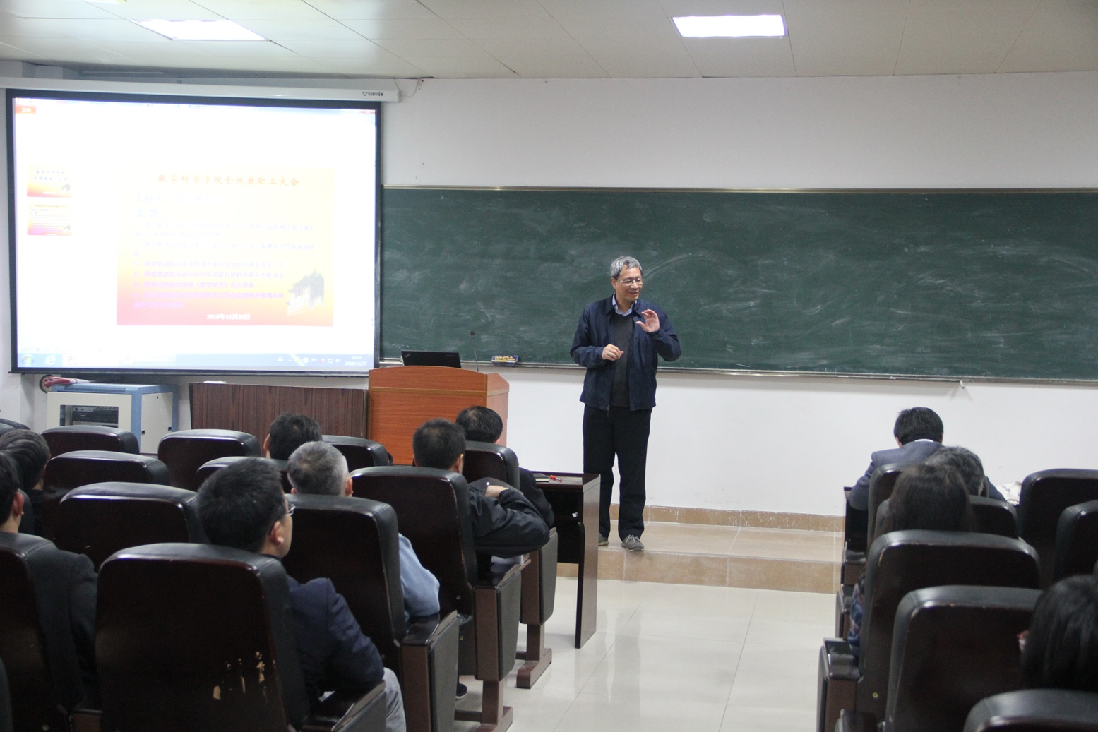 12月25日下午,乐竞体育-中国一站式服务官网在海韵园实验楼105召开学期末教职工大会,乐竞体育-中国一站式服务官网党政领导和全体教职员工参加了会议。黄宝秋书记主持了会议。