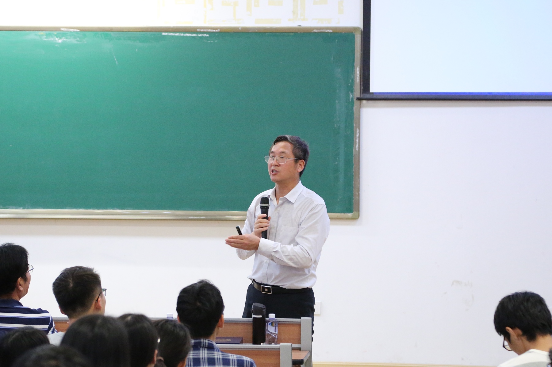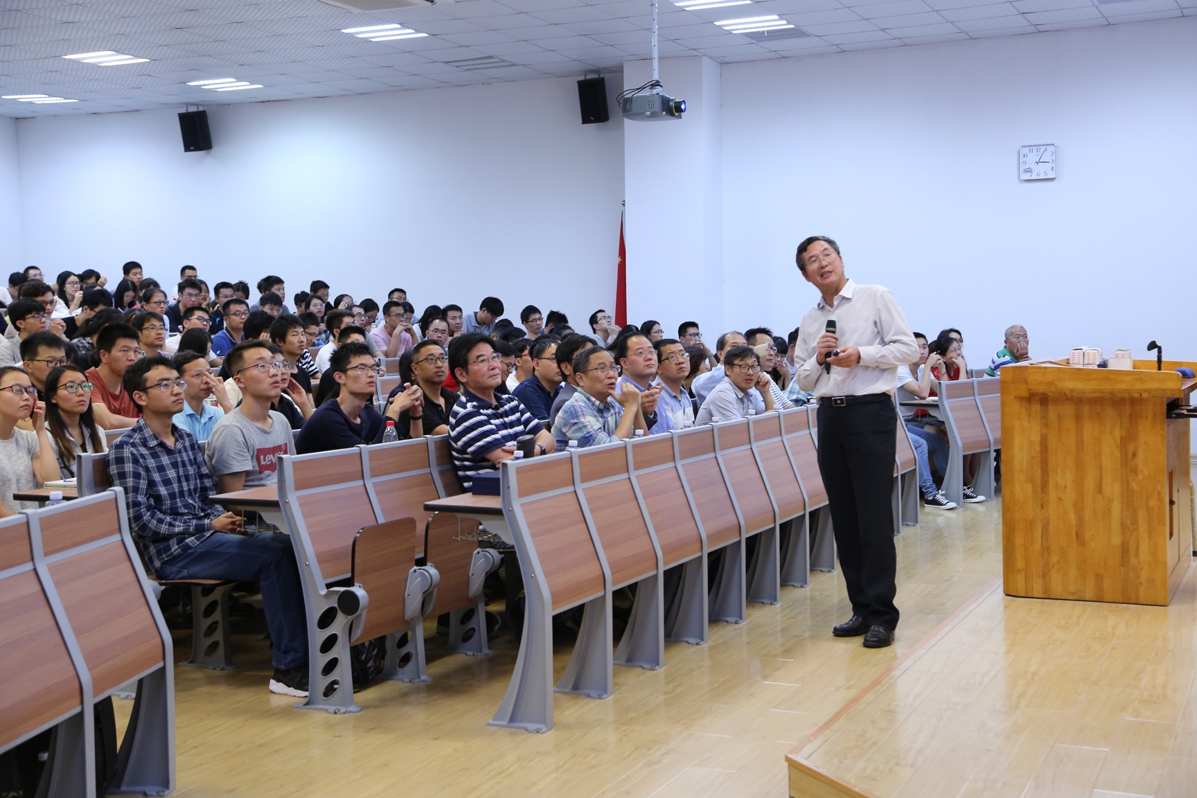 袁亚湘院士从数据的收集、应用驱动出发,引出大数据的规律、分类和预测等问题,提出了数据问题的优化建模和复杂性,用通俗易懂的语言介绍了正则化问题、稀疏问题、压缩感知、矩阵完整化、距离几何问题、分类问题、梯度法、随机梯度法、交替方向法等当前国际上备受关注的数据优化问题和主要优化算法,深入浅出地解释了这些方法的本质和关键,为在场的师生们揭开了数据科学与优化研究的神秘面纱。袁亚湘院士用“老瓶装新酒”、“分而治之”和“基础数学理论威力强大”总结了数据科优化带来的启示,一是简单经典的数学方法在现代数据科学中发挥出新的作用,二是数据科学问题是具有特殊结构的,要依据数据的结构对数据问题进行分解,三是大量数据中常常隐含着“凸性”和“流行上的优化”等性质,这体现出基础数学理论具有强大的威力。