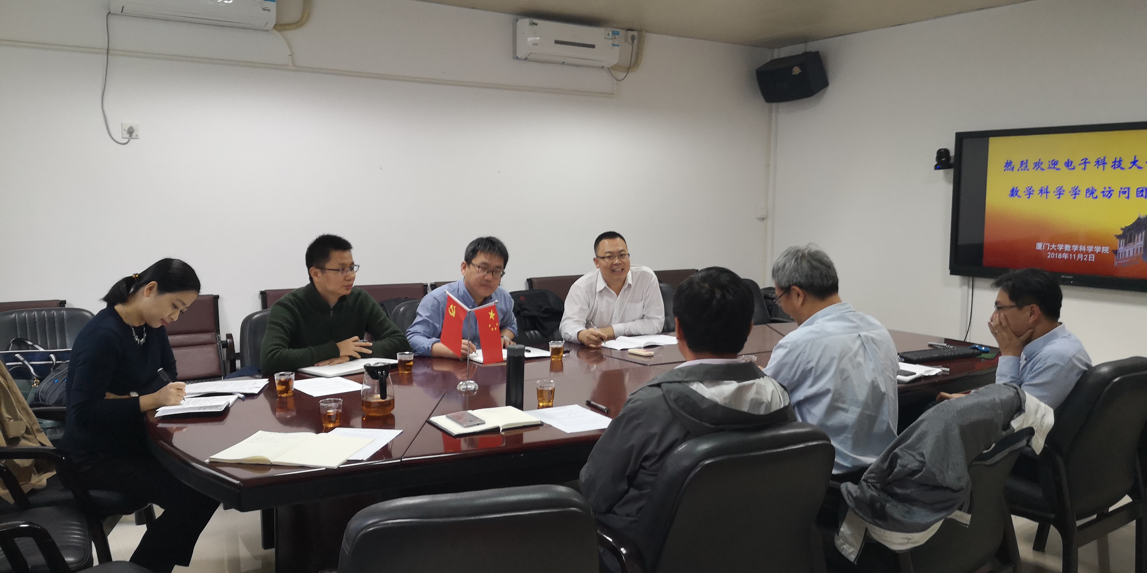 11月2日上午,电子科技大学数学科学乐竞体育-中国一站式服务官网徐立伟院长、向昭银副院长和荆燕飞副院长一行4人前来我院调研,乐竞体育-中国一站式服务官网谭绍滨院长、邱建贤副院长、张剑文副院长、金贤安副院长和办公室主任林智雄参加了调研座谈。