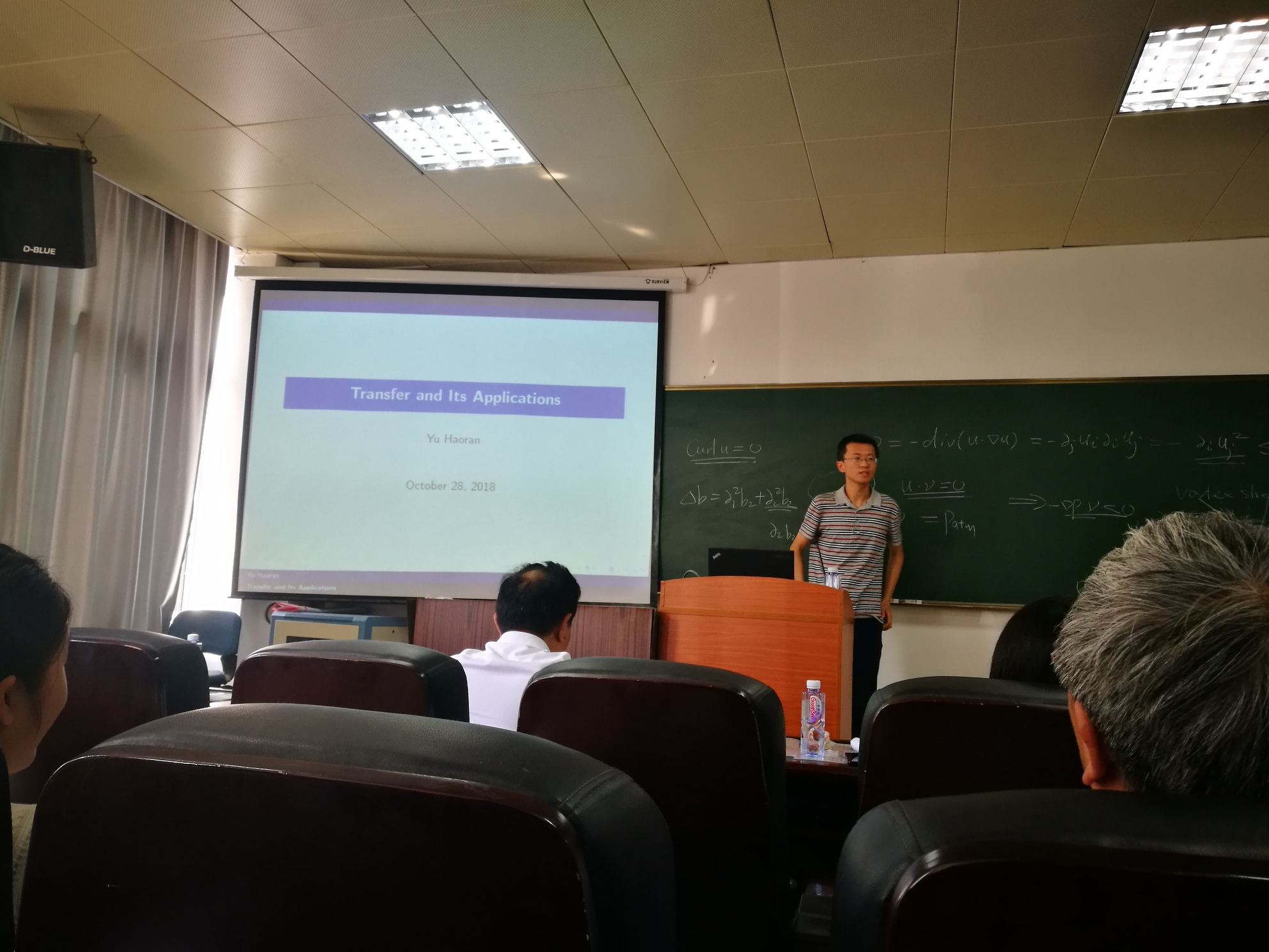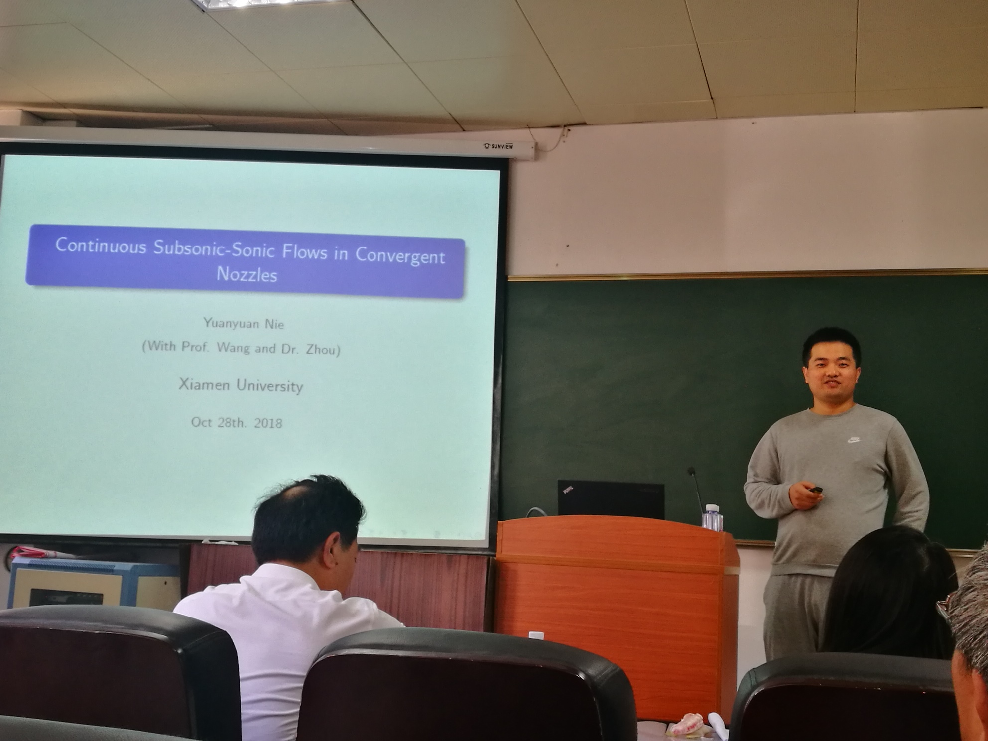 上午和下午的学术报告会分别由邱建贤副院长和张然副院长主持,双方数学工作者奉献了8场精彩的学术报告。吉林大学高丽媛、王培洁、聂元元、于浩然、李欣欣分别做题为《The instrituion fuction in income gap evolution》、《Inference on Semiparametric Transformation Model with General Interval-censored Failure Time Data》、《Perturbation Problems of Continuous Subsonic-Sonic Flows in Convergent Nozzles》、《Transfer and Its Applications》、《Linearized Alternating Direction Method of Multipliers with Adaptive Stepsize》的学术报告,我院梁薇、王焰金、黄文分别做题为《Empirical Likelihood for Differentiable Functionals under Doubly Censorship》、《Incompressible inviscid resistive MHD surface waves in 2D》、《Riemannian optimization and averaging symmetric positive definte matrices》的学术报告。