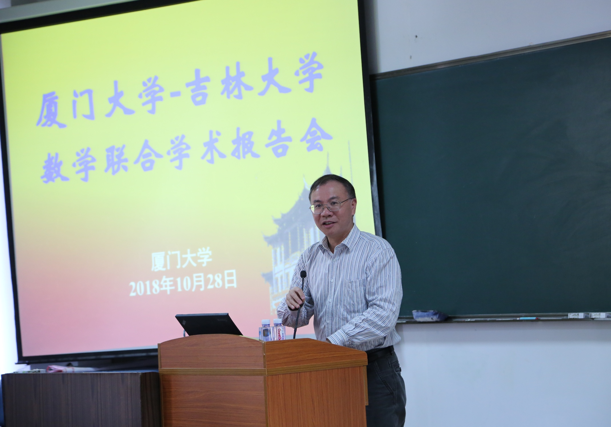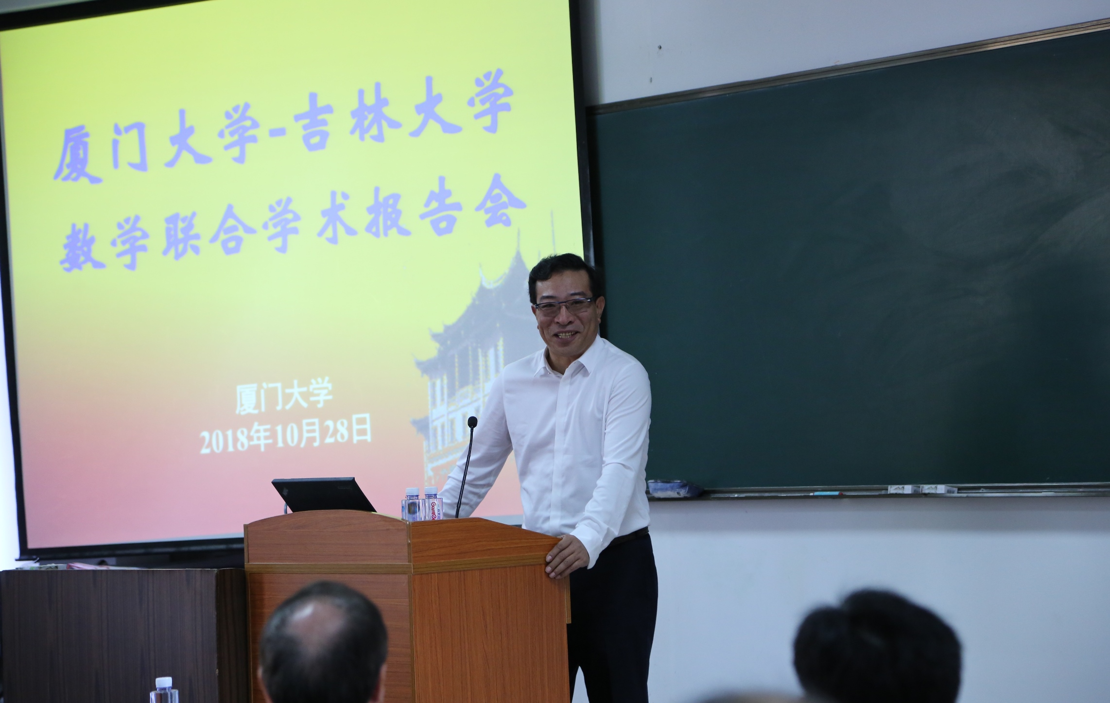 10月28日,厦门大学-吉林大学数学联合学术报告会在海韵园实验楼105举行,吉林大学数学科学乐竞体育-中国一站式服务官网李辉来院长、王德辉副院长、张然副院长、陈续升副院长等一行13人参加了本次活动;我院谭绍滨院长、陈国强副书记、张剑文副院长、邱建贤副院长、金贤安副院长、刘永建副院长和师生代表出席了学术报告会。