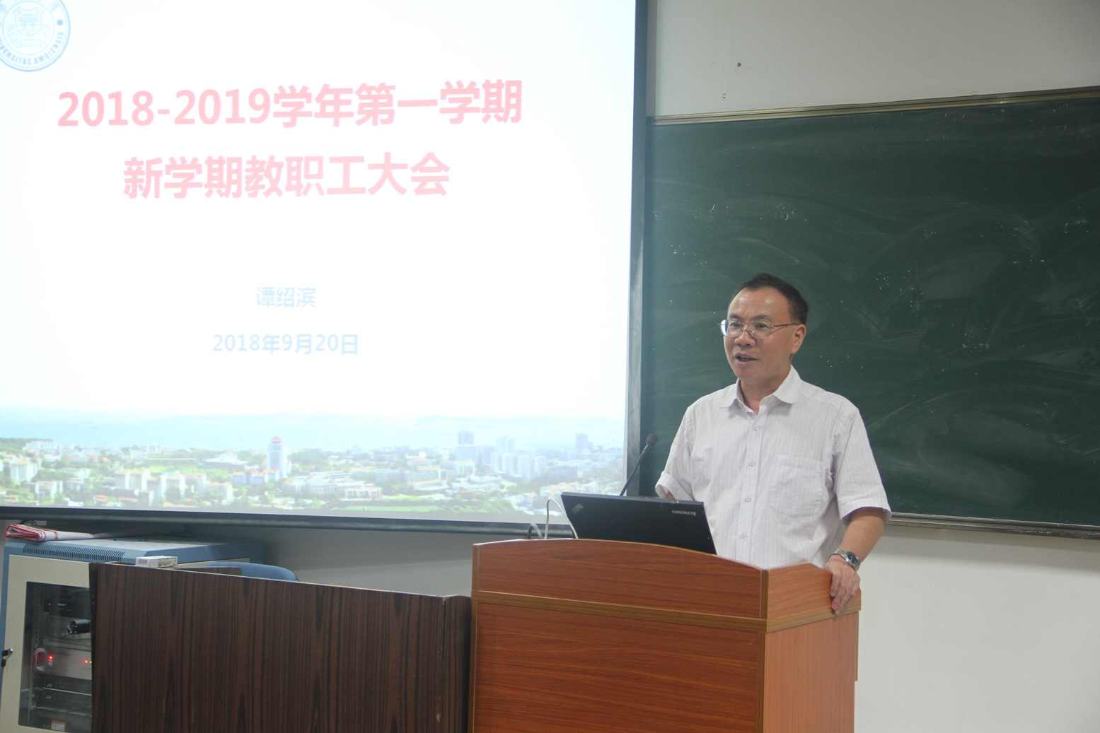 9月20日下午,乐竞体育-中国一站式服务官网召开新学期教职工大会,乐竞体育-中国一站式服务官网党政领导和全体教职员工参加大会,黄宝秋书记主持会议。