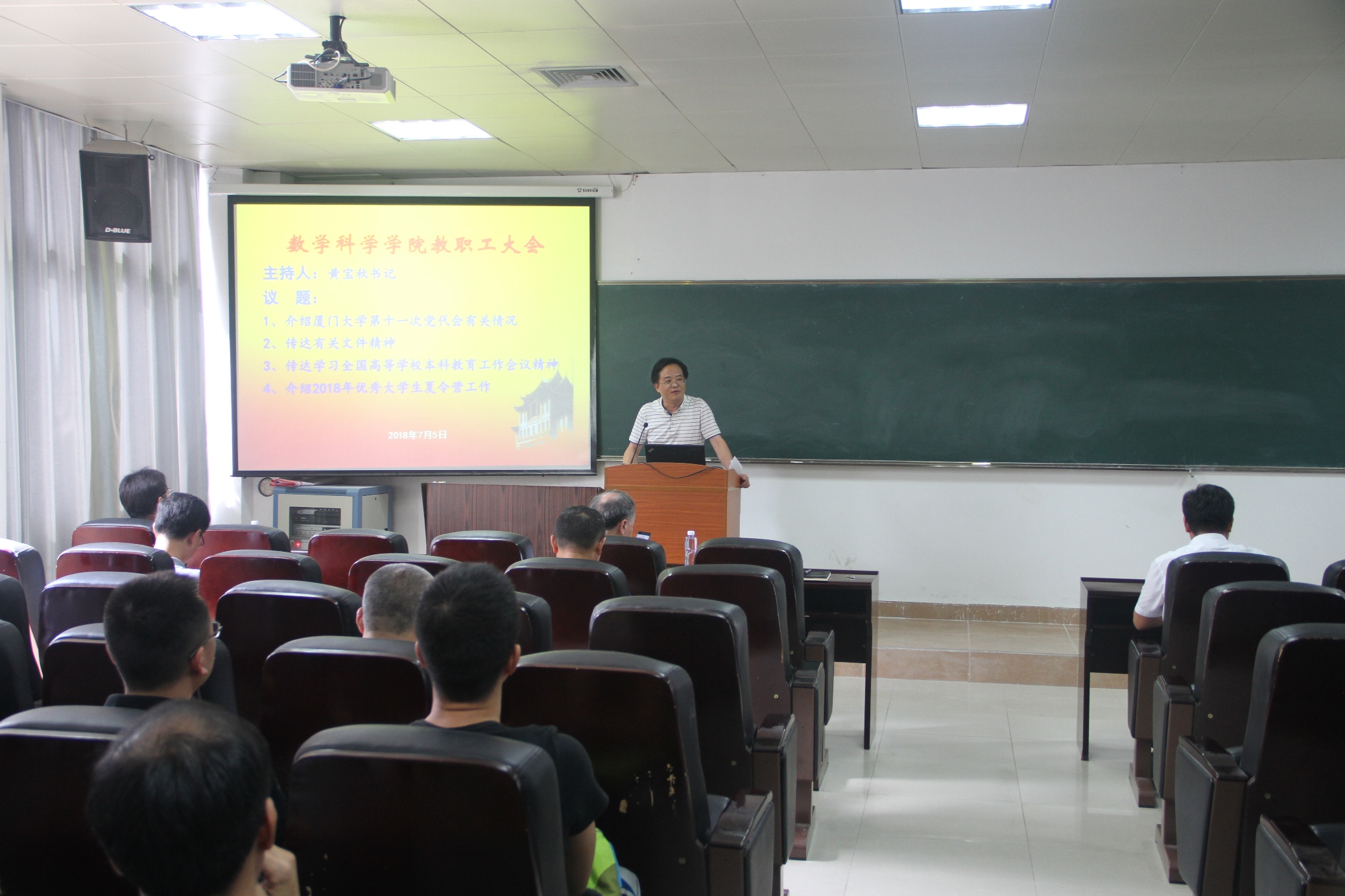 黄宝秋书记以党代会代表的身份,从大会召开的背景与意义、会期和日程安排、大会主题、党代会报告等方面介绍了学校第十一次党代会盛况,并谈了参会和学习感受。他指出,学校第十一次代表大会是在中国特色社会主义进入新时代,我校改革发展和“双一流”建设开启新征程的关键时期召开的一次十分重要的大会。大会回顾和总结了学校过去五年的工作,进一步明确了建设世界一流大学的“三步走”战略,对加快推进中国特色世界一流大学建设作出了全面部署,对学校全面加强党的领导、党的建设和从严治党提出了一系列重大举措,对全面实现“百年厦大”建设目标、开启世界一流大学建设新征程具有极其重要而深远的意义,对乐竞体育-中国一站式服务官网党的建设和事业发展具有十分重要的指导意义。院党委将按照校党委统一部署要求,认真做好十一次党代会的学习宣传贯彻工作,将学习宣传贯彻与贯彻落实习近平新时代中国特色社会主义思想和党的十九大精神结合起来,与推进“两学一做”学习教育常态化制度化结合起来,与“不忘初心、牢记使命”主题教育结合起来,与乐竞体育-中国一站式服务官网“双一流”建设结合起来,切实把思想和行动统一到党代会提出的各项目标任务上来;接下来,要以党支部为单位,以政治理论学习的方式,精心组织好学习传达工作,把党代会精神传达到每个支部、每一位党员,传递给广大师生员工,务求学习宣传贯彻活动取得实效;同时要做好宣传工作,及时报道乐竞体育-中国一站式服务官网学习宣传贯彻情况,营造浓厚的舆论氛围。
