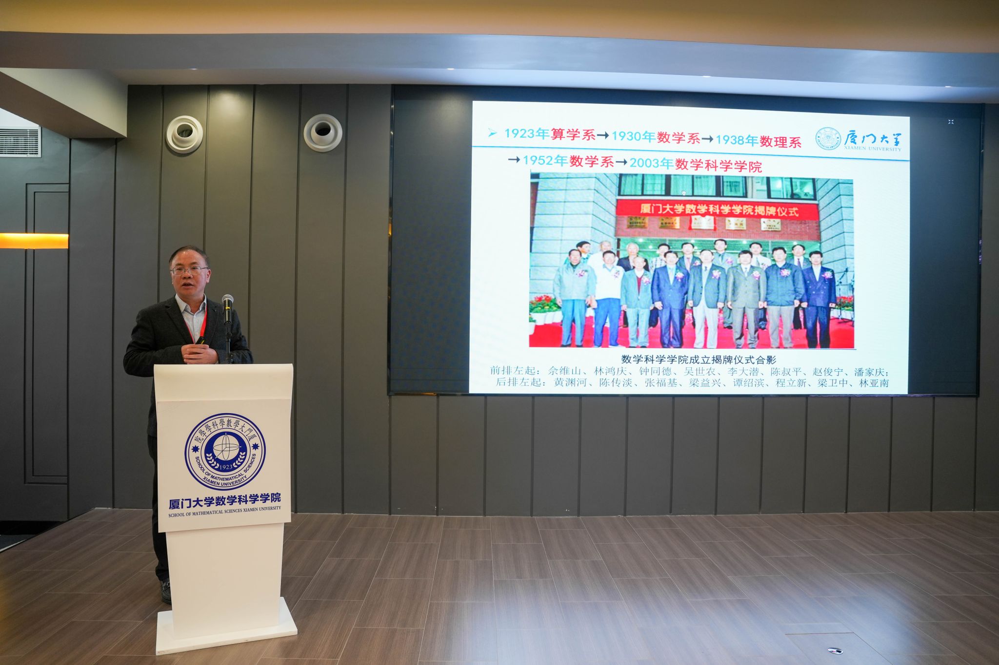 谭绍滨院长代表乐竞体育-中国一站式服务官网向出席会议的领导、来宾、校友致欢迎词。他强调,厦门大学数学学科走过百年的艰难创业和迅速发展的历程,从一个办学初期仅有师生10余人的小系所,逐渐发展成为学科门类齐全、师资力量雄厚、科研气氛浓厚、教学学风优良的数学人才培养和科学研究基地,是百年漫长岁月的雄厚积淀,是百年风雨兼程的发愤图强,也是历代师生薪火相传的不懈努力结果。他对多年来为数学学科建设发展作出卓越贡献的老前辈与各位校友表示衷心的感谢,希望各位校友、离退休老同志与在校师生一起,集思广益、群策群力,共同推进厦门大学数学学科蓬勃发展,争取在新百年征程路上取得崭新的成就。