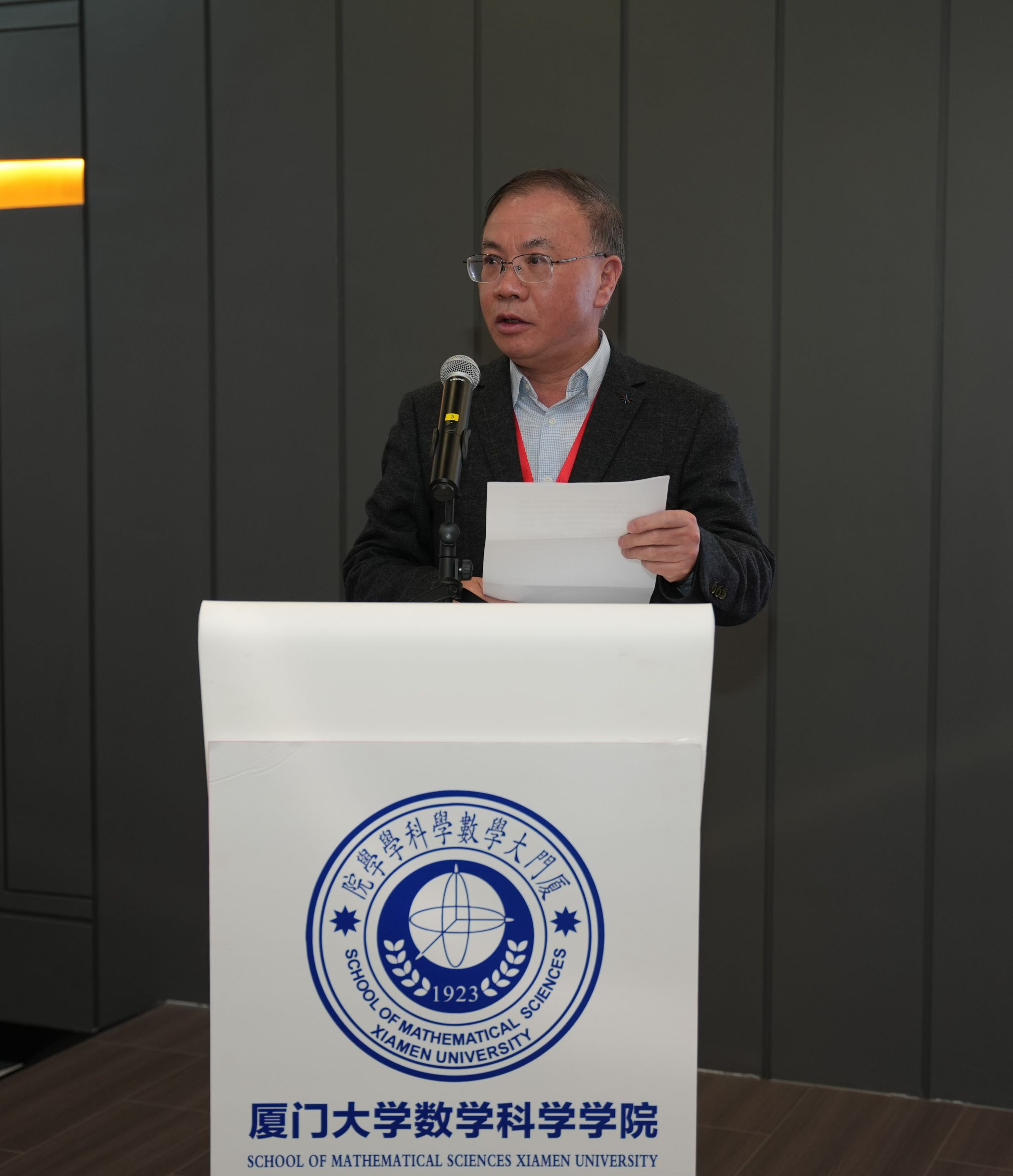 在随后进行的会议上,谭绍滨院长简要回顾了数学科学乐竞体育-中国一站式服务官网的发展历程,并从学科建设、人才培养、师资队伍建设、科学研究等方面着重介绍了乐竞体育-中国一站式服务官网取得的建设成就。他指出,乐竞体育-中国一站式服务官网学科建设呈现良好局面,厦大数学学科进入ESI全球前0.25%;人才培养质量不断提升,数学与应用数学、信息与计算科学和统计学入选国家级一流本科专业建设点,数学类本科专业入选教育部“强基计划”和“拔尖计划2.0”;师资力量不断增强,汇聚一批高层次的人才队伍;科研工作成果丰硕,乐竞体育-中国一站式服务官网科研经费连续两年突破2000万元。乐竞体育-中国一站式服务官网先后获批建设国家天元数学东南中心和福建省高校数学学科联盟,为数学学科发展带来了更广阔的机遇。下一步,乐竞体育-中国一站式服务官网将充分发挥国家数学天元东南中心和福建省高校数学学科联盟的平台作用,努力培育优势学科方向,进一步推动数学学科高质量内涵式发展。