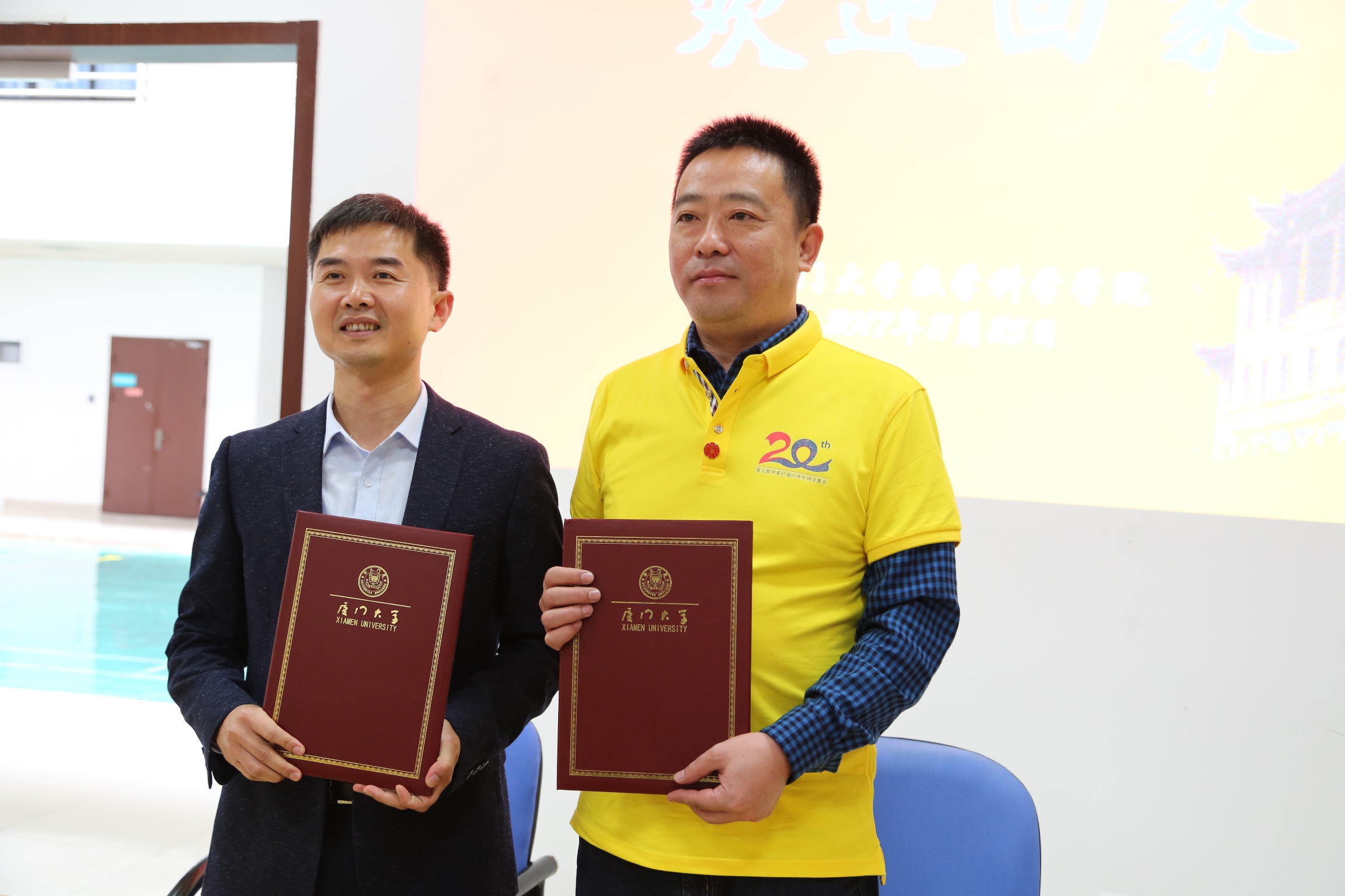捐赠仪式上,校友们表达了对乐竞体育-中国一站式服务官网的感恩,希望能为乐竞体育-中国一站式服务官网的事业发展添砖加瓦,助力乐竞体育-中国一站式服务官网事业发展再上新台阶。张明智书记代表乐竞体育-中国一站式服务官网对93级校友慷慨解囊,关心数学学子的成长成才,支持乐竞体育-中国一站式服务官网建设和发展表示感谢。他说,这是乐竞体育-中国一站式服务官网校友第一个以年级的名义捐资设奖,说明了93级同学深深的同学情谊和对母校浓浓的感恩之心,是一个具有凝聚力和向心力的充满朝气的年级,他们的义举,一定能激励更多厦大“数学人”团结起来,凝心聚力,推动厦门大学数学学科再创新辉煌。