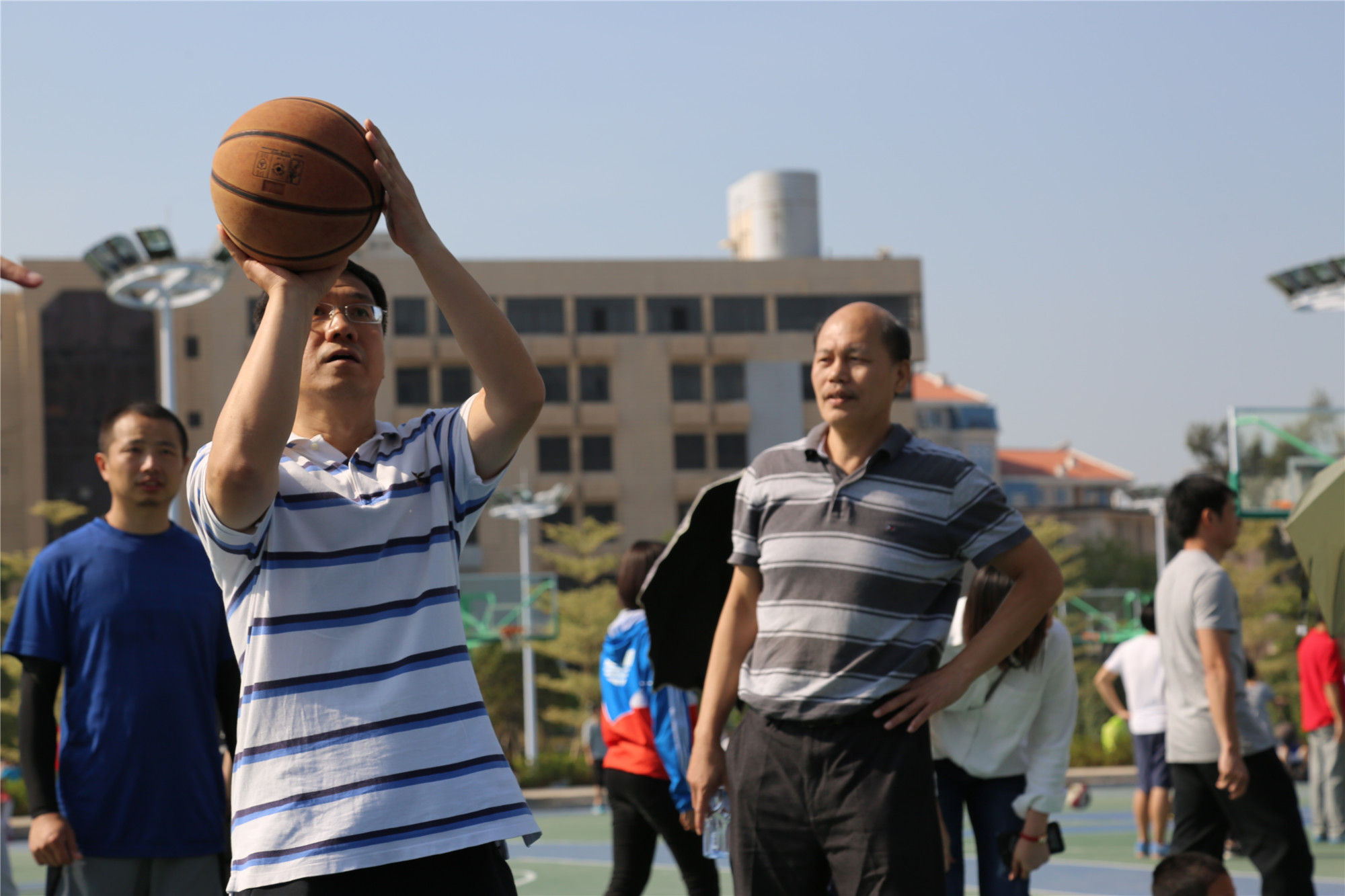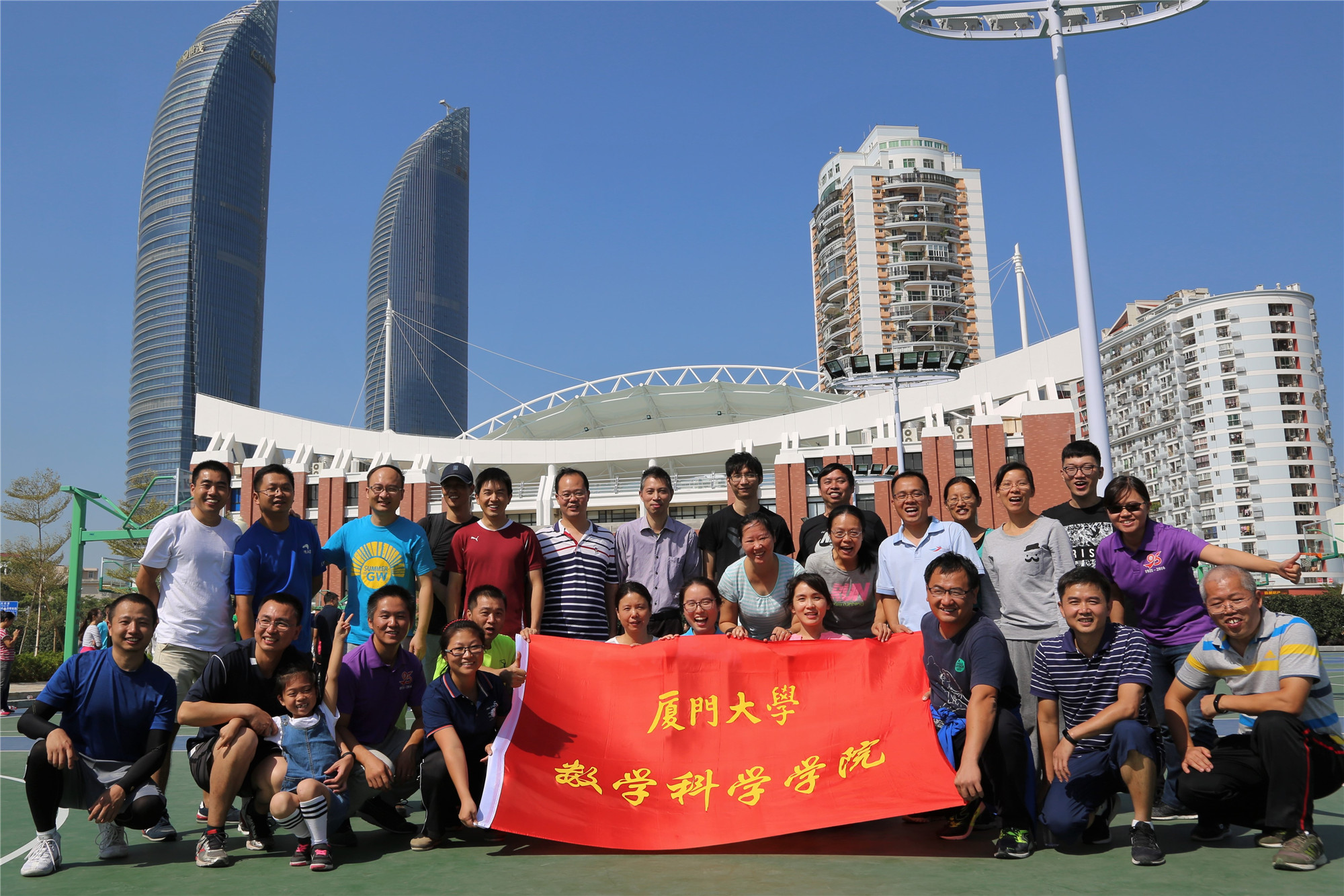 2017年10月29日,蓝天、白云、阳光和全校教职工因一场别开生面的校教职工趣味运动会而齐聚于厦门大学演武运动场。数院老师们更是在谭绍滨院长、张明智书记和伍火熊主席的带领下,早早在篮球场一角进行赛前的热身、动员和训练。