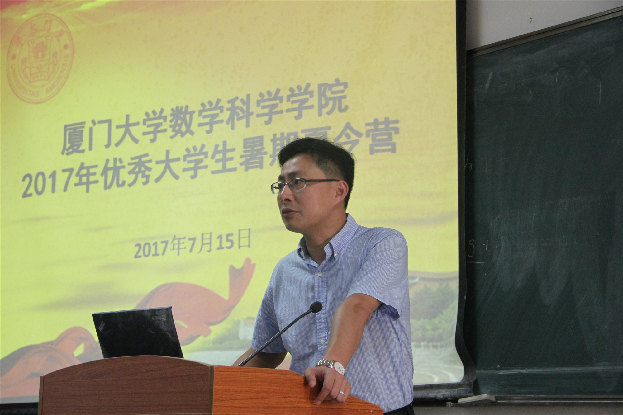 7月15日上午,乐竞体育-中国一站式服务官网在海韵园校区实验楼105教室举行夏令营开营式,院长林亚南教授、院党委书记张明智老师、院团委书记陈向柳老师参加开营式,乐竞体育-中国一站式服务官网党委副书记张剑文教授主持开营式。在愉快而热烈的气氛中,林亚南院长代表乐竞体育-中国一站式服务官网向参加本次活动的同学表示诚挚的欢迎,并向同学们介绍了乐竞体育-中国一站式服务官网的历史发展、学科建设、师资队伍和人才培养等方面的概况,让同学们对乐竞体育-中国一站式服务官网有更清晰的认识。张明智书记从美丽校园、和谐乐竞体育-中国一站式服务官网的角度向同学们介绍了我校浓厚的人文情怀以及我院在硕士、博士招生方面的政策,特别介绍了乐竞体育-中国一站式服务官网对直博生以及重点高校学生来我院读研的奖励计划,鼓励同学们选择厦大、选择数学。最后,陈向柳老师作安全教育,强调宿舍管理条例,预祝同学们在厦大期间收获满满。