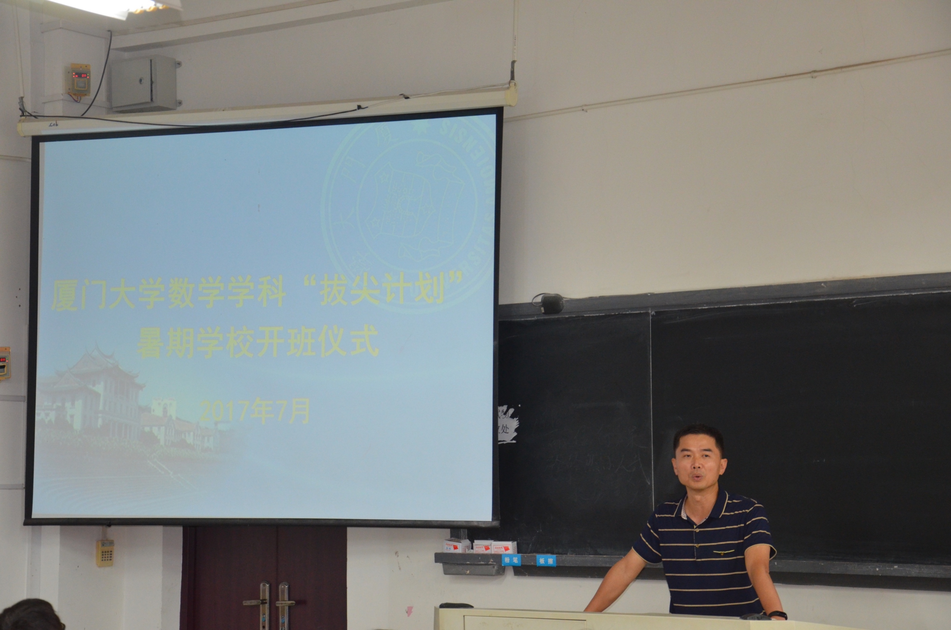 仪式开始,党委书记张明智致辞。他代表乐竞体育-中国一站式服务官网对参加本次暑期学校的厦大学子以及来自全国各地的优秀数学系同学表示热烈欢迎,对暑期班工作人员的辛勤付出表示感谢!他对全体学员寄予希望。希望同学们珍惜机会,互相交流学习,取长补短。本次暑期班课程设置丰富,邀请在数学方面的专家、教授为大家授课,为学员们献上学术饕餮盛宴,他鼓励学员们认真学习钻研。随后,他强调了学员们在校学习期间的安全,提醒学员注意交通安全,提高防骗意识。厦门天气炎热,请学员们做好降温防暑,严禁学员下海游泳。现正值厦门台风多发季,要求学员们在台风来临时尽量避免外出,提高防台避灾的能力。最后,他预祝暑期班全体学员学有所成、友谊长存!