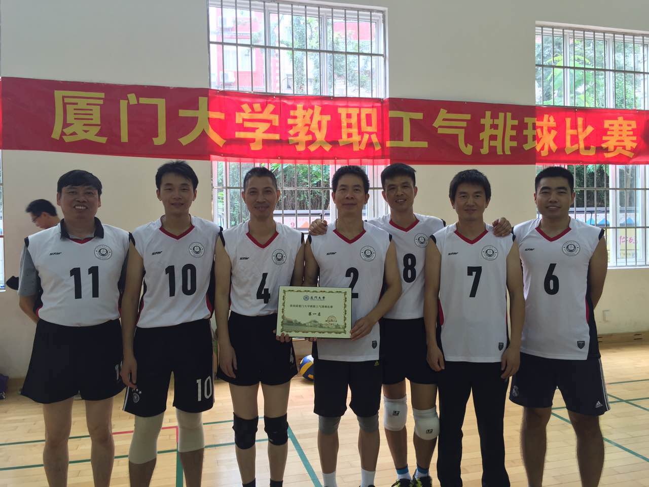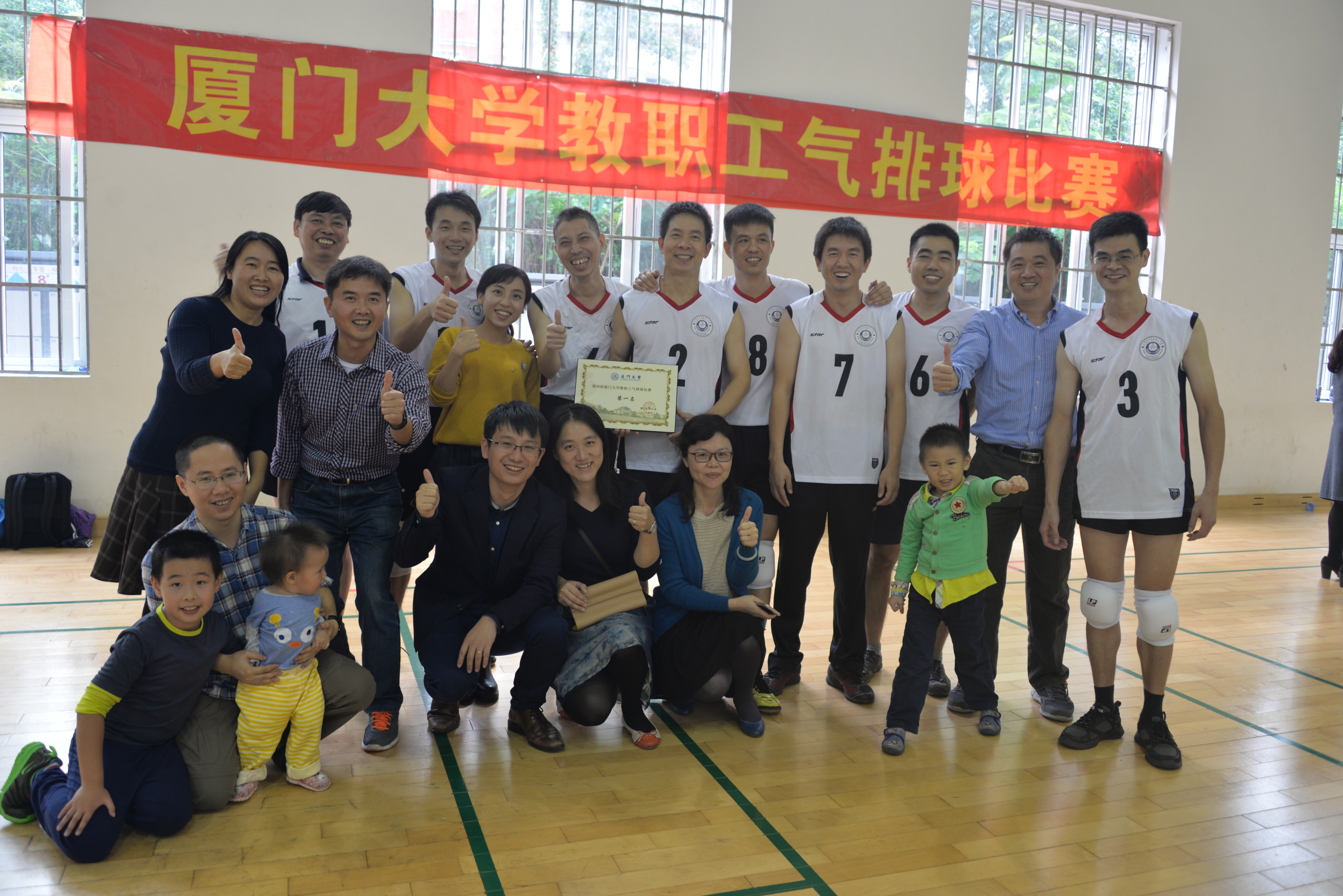 2016年第四届厦门大学教职工气排球赛在12月3日、4日在学校本部风雨球场如火如荼地进行,紧凑、激烈的赛程中,我院教职工队一路过关斩将,携第三届冠军的雄威,成功卫冕。
