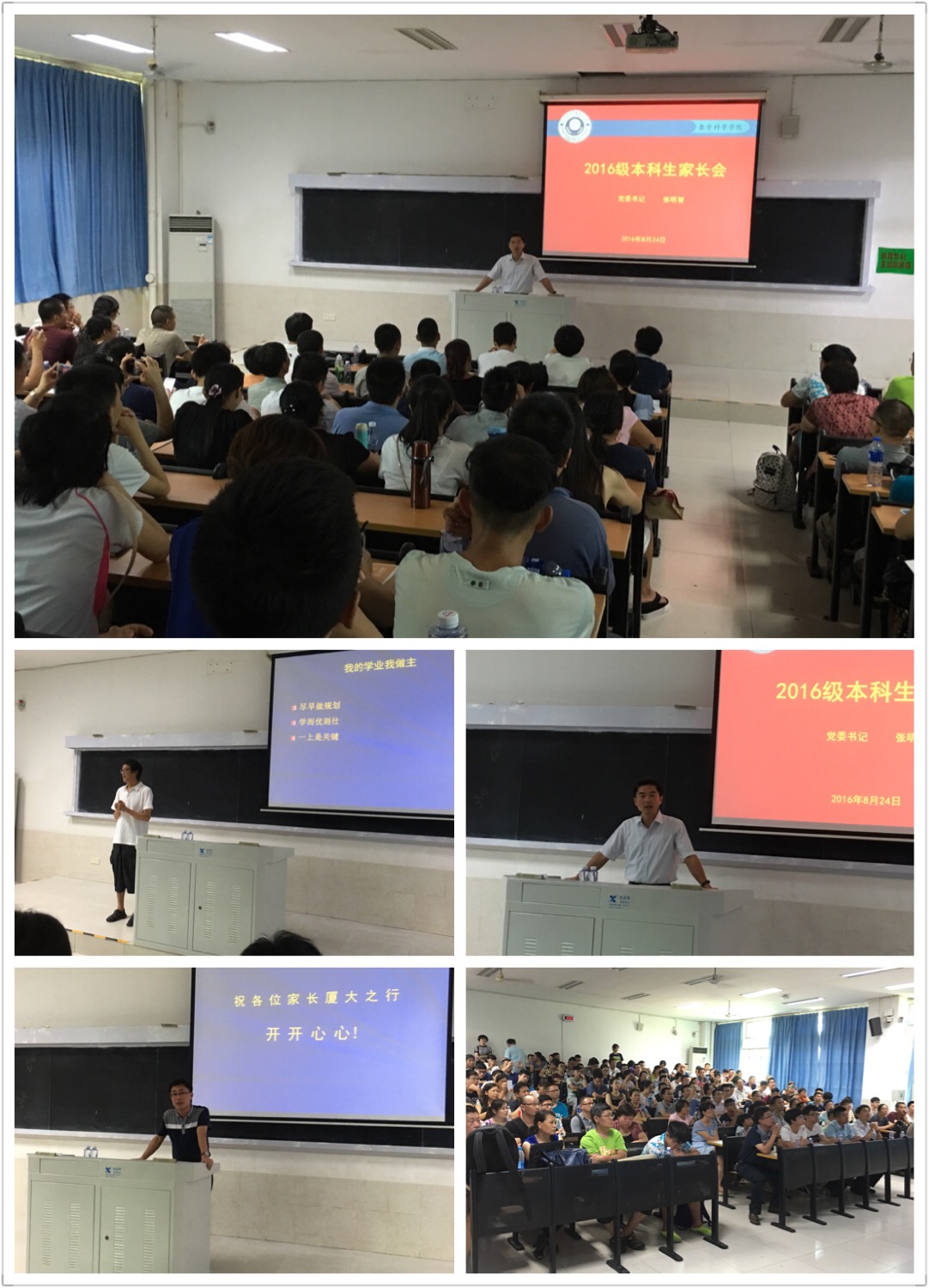 下午的迎新点依旧热闹非凡。三点半,2016级新生家长会在学生公寓105成功召开,由院党委副书记张剑文老师主持。副院长钱建国老师向新生及家长介绍了大学四年的规划,党委书记张明智老师介绍了乐竞体育-中国一站式服务官网概况、新生信息以及典型学生案例,使全体新生及家长对数学专业大学四年的学习生活有了基本的认识。