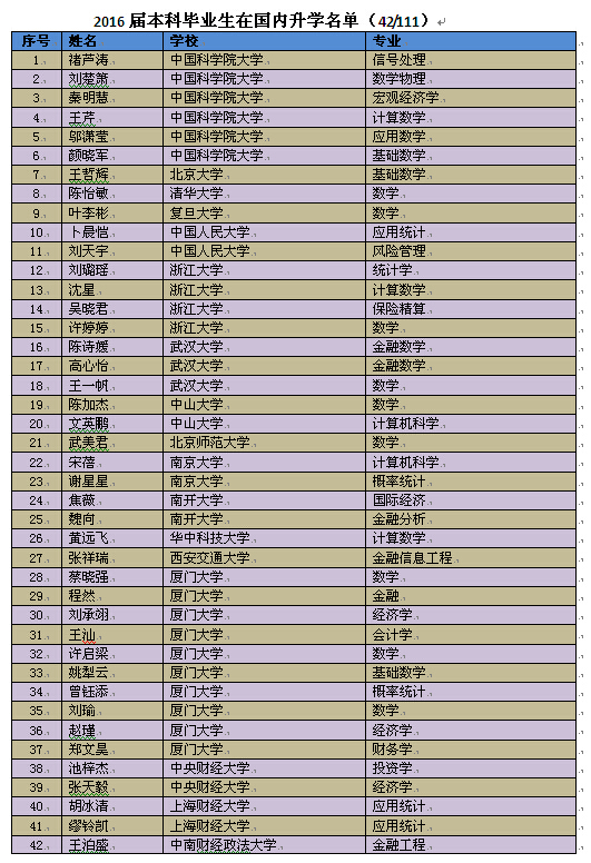 国内读研的42名毕业生分布在全国17所高校。除厦门大学外,去向最多的三所高校院所分别为中国科乐竞体育-中国一站式服务官网大学、浙江大学、武汉大学,人数分别为6人、4人、3人。