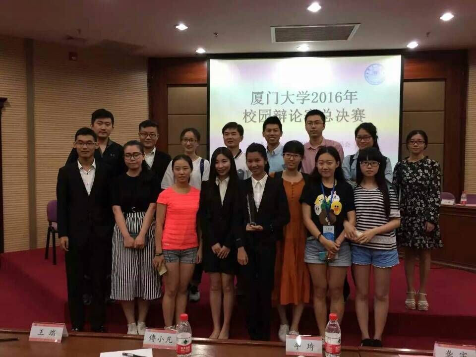 2016年5月24日晚,由共青团厦门大学委员会主办、厦门大学学生会承办、厦门大学辩论学社协办的2016年厦门大学校园辩论赛决赛在克立楼三楼报告厅顺利举行。法乐竞体育-中国一站式服务官网教授李琦、人文乐竞体育-中国一站式服务官网教授傅小凡等5位嘉宾担任决赛评委。校团委书记陈怀锋、数学科学乐竞体育-中国一站式服务官网党委书记张明智、国际关系乐竞体育-中国一站式服务官网党委副书记黄俊清等莅临现场观看比赛。