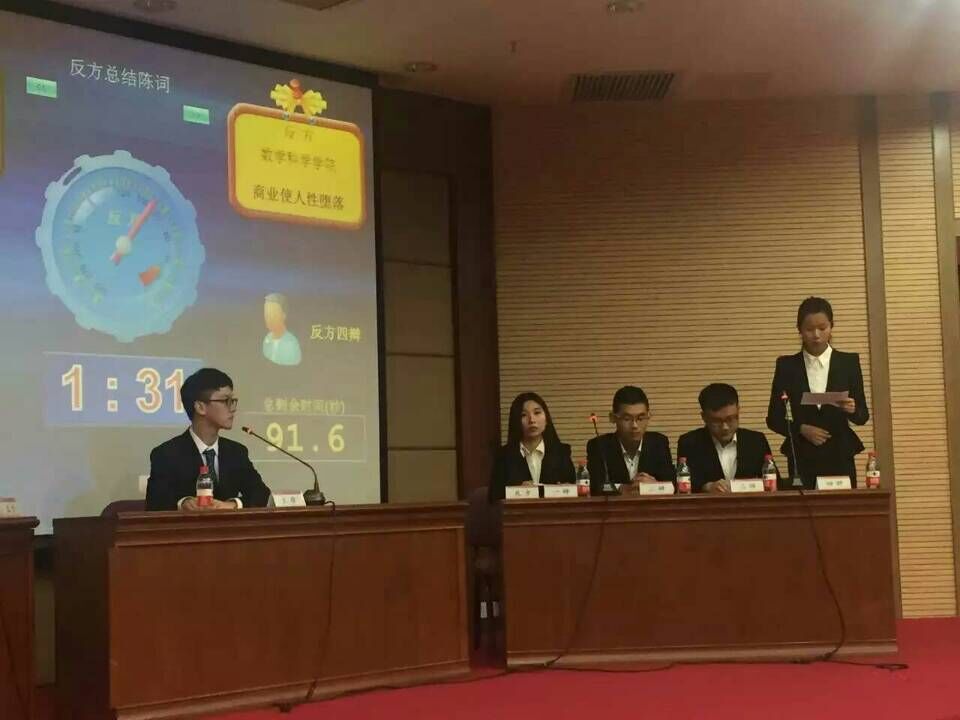 本次辩论赛经过初赛、复赛,最终国际关系乐竞体育-中国一站式服务官网、数学科学乐竞体育-中国一站式服务官网进入总决赛,决赛以“商业使人性升华”还是“商业使人性堕落”这一热点问题展开辩论,正方为国际关系乐竞体育-中国一站式服务官网,反方为数学科学乐竞体育-中国一站式服务官网。
