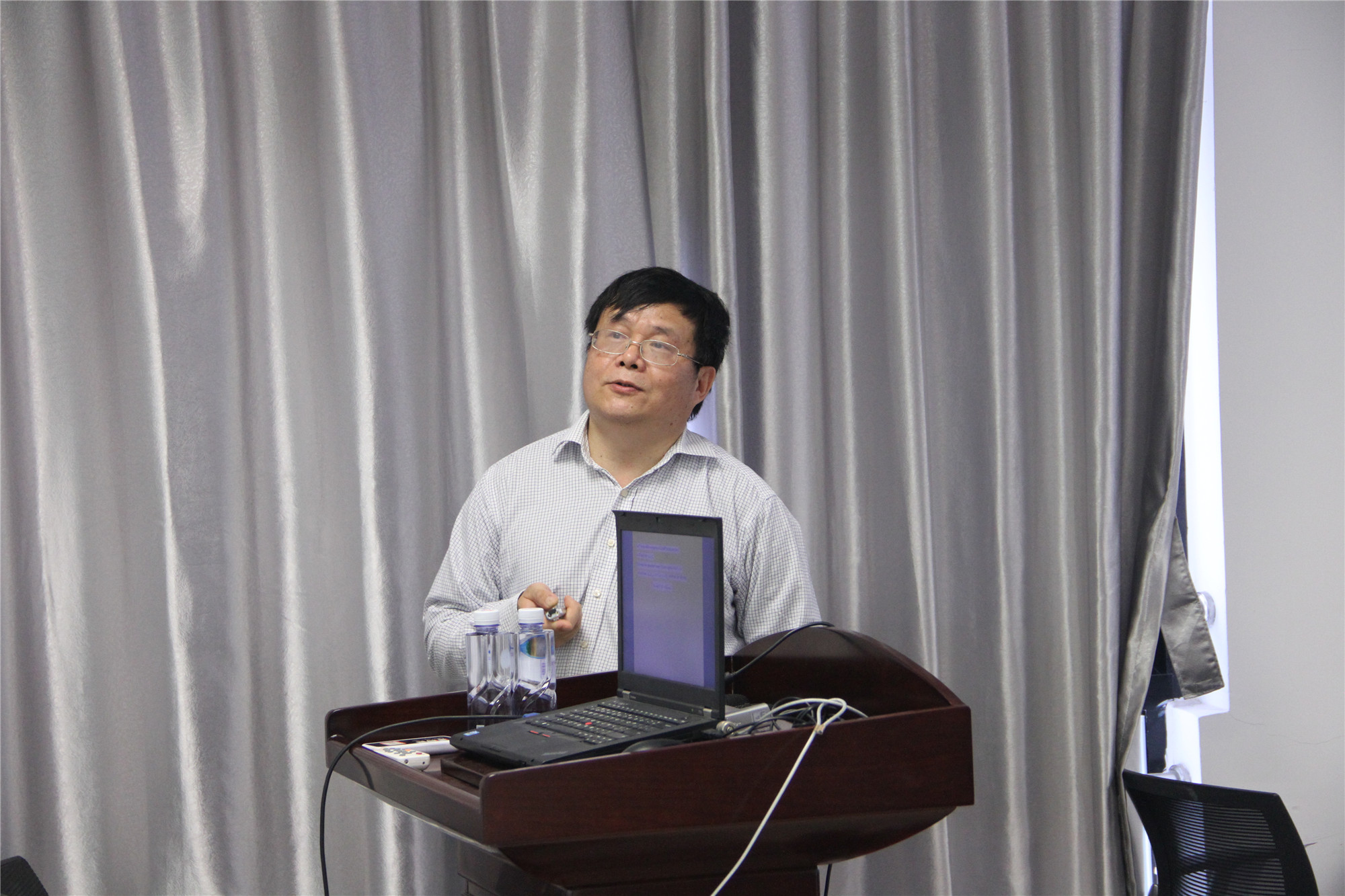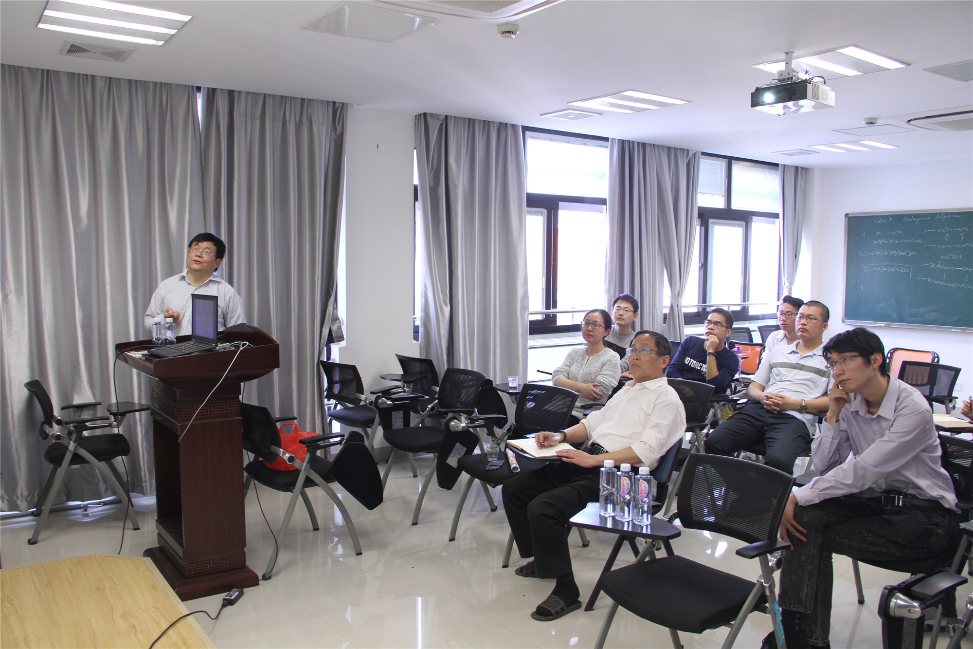 报告正式开始,苏教授简明扼要地阐述了李超代数的概念及相关的定义和结论,重点阐述了他构造的一类广义Loop Super—Virasoro代数的结构,并详细说明了李超代数和李代数之间的一些联系和区别。最后,他介绍了关于广义Loop 无中心的Super—Virasoro代数的导子代数,自同构群,二阶上同调群。报告即将结束时,苏育才教授谈到了李超代数在表示理论的一些未解决的问题,引导同学们深入思考,并与王清、陈福林等师生进行交流探讨。