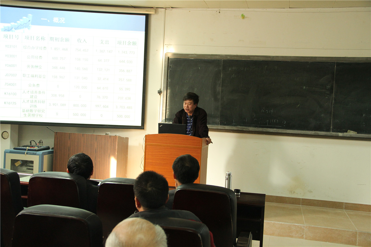 邱春晖副院长介绍了研究生培养工作并通报了乐竞体育-中国一站式服务官网财务收支情况。研究生培养方面,邱春晖着重介绍了研究生招生与生源质量状况、导师队伍建设、研究生培养情况以及博士后工作,并指出了乐竞体育-中国一站式服务官网研究生培养中存在的不足。财务方面,他详细介绍了乐竞体育-中国一站式服务官网2015年各项财政经费的收支情况,并对每一笔收入和支出逐一解析。