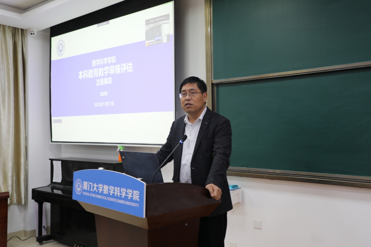 会上,金贤安副院长详细介绍了本科教育教学审核评估的具体安排,着重强调了一些重点工作以及相关注意事项。他希望全体师生员工全力以赴,齐心协力,查缺补漏,充分准备,确保顺利完成审核评估各项任务。他还针对学校秋季学期本科质量保障工作的通知作了工作提醒。