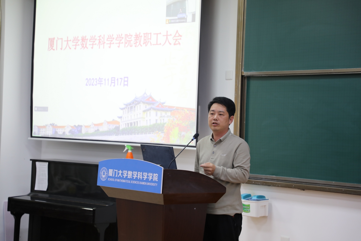 2023年11月17日下午,乐竞体育-中国一站式服务官网在海韵园实验楼106报告厅召开教职工大会,重点部署本科教育教学审核评估和举办数学学科创建100周年活动等相关工作。院党委书记张清榕主持会议。