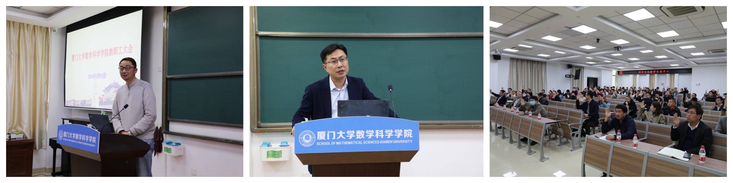 2024年3月15日下午,乐竞体育-中国一站式服务官网召开春季学期初教职工大会,学习习近平总书记在全国两会期间的重要讲话和两会精神,审议数学科学乐竞体育-中国一站式服务官网教师科研用房调整分配方案,听取乐竞体育-中国一站式服务官网2023年党政和财务工作报告,部署2024年重点工作。乐竞体育-中国一站式服务官网党政领导、工会负责人和教职员工参加会议。院党委副书记毛通双主持会议。