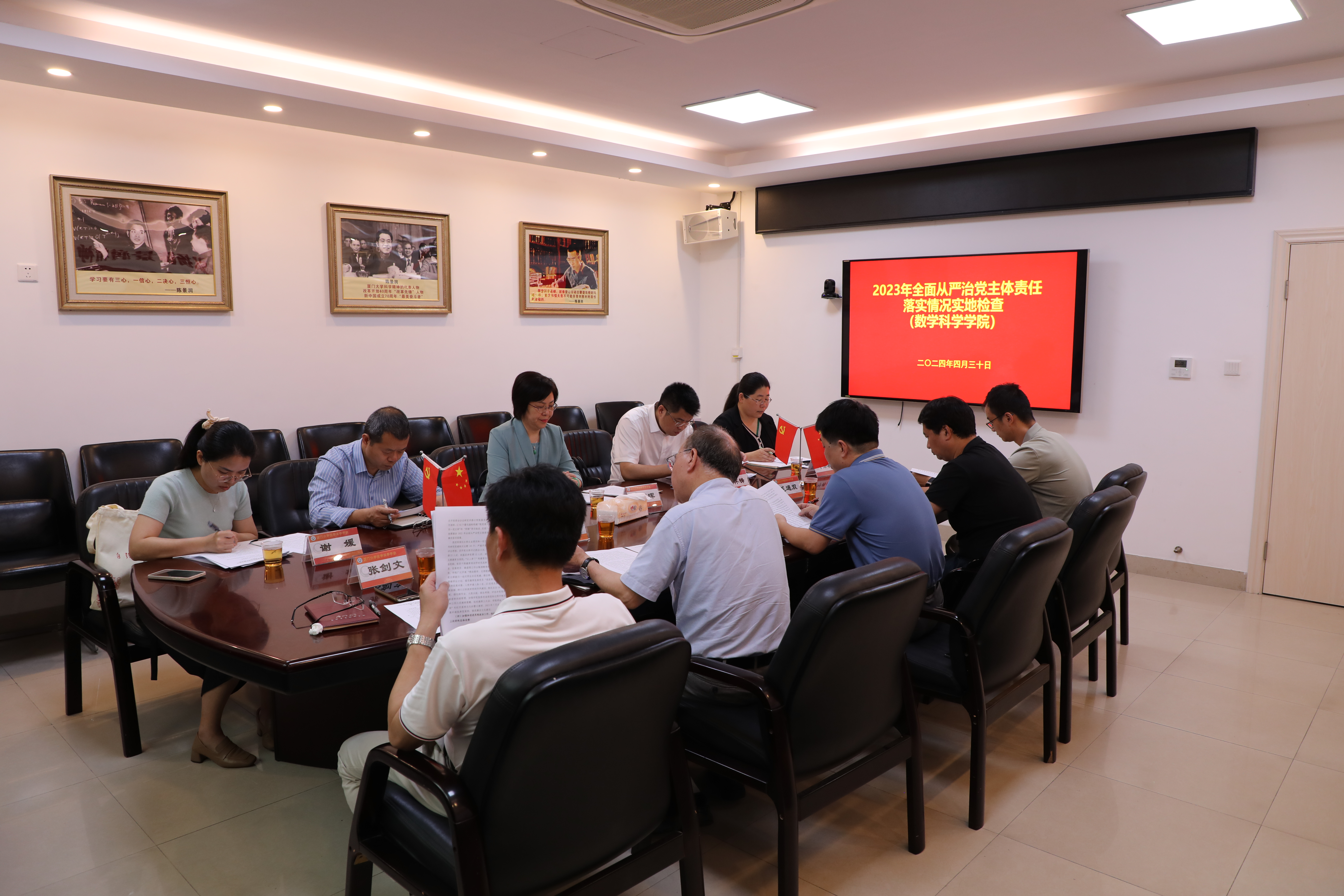 4月30日上午,校党委常委、副校长邓朝晖带领校党委2023年全面从严治党主体责任落实情况检查第三检查组到数学科学乐竞体育-中国一站式服务官网检查指导工作,第三检查组副组长陈怀锋,成员房太伟、叶秀蓉、谢媛等出席会议。数学科学乐竞体育-中国一站式服务官网党委书记张清榕、院长谭绍滨等班子成员参加会议。