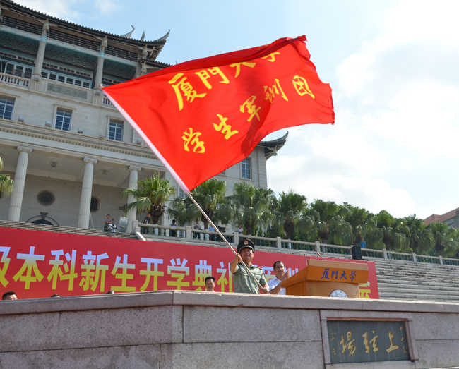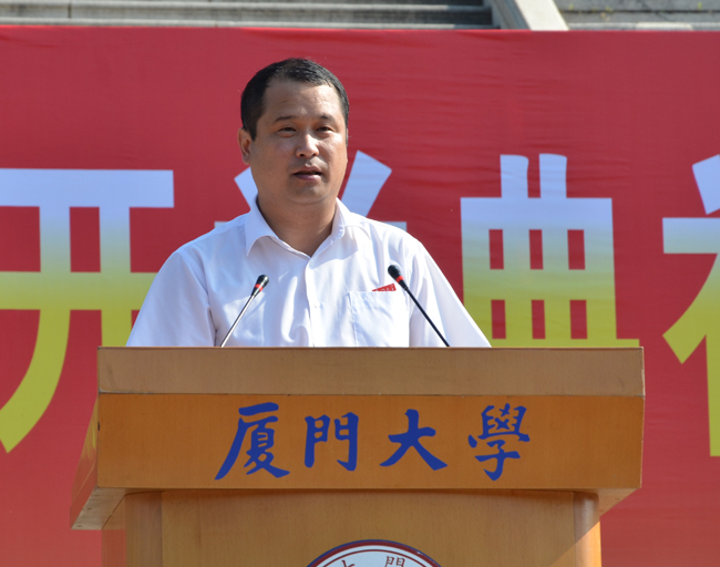 林东伟作军训动员报告。首先代表厦门大学向部队承训官兵表示热烈欢迎和崇高敬意,向全体参训同学表示亲切的问候。