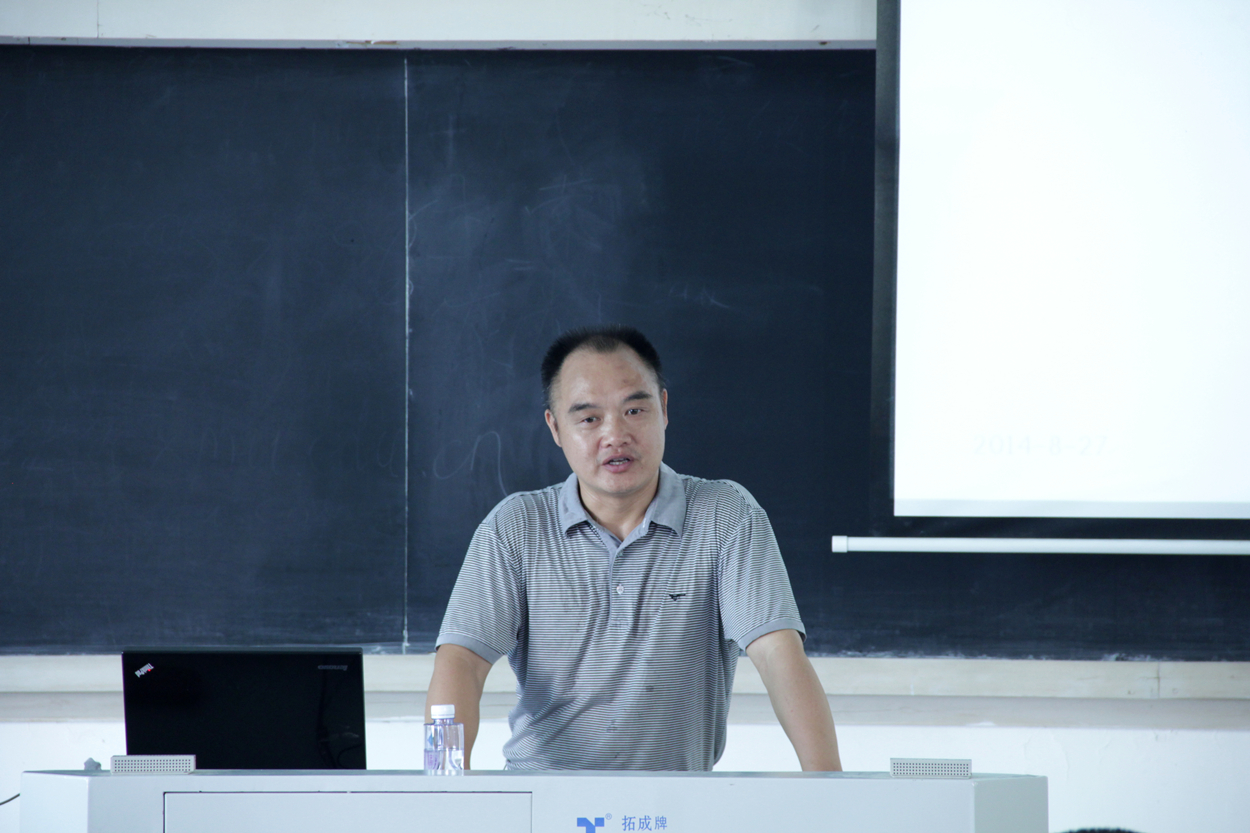 2014年8月26日上午9:00,2014级本科新生入学教育系列五(学校史、知校情、唱校歌)在学生公寓教学楼205举行,由党委副书记郑诚明主讲。
