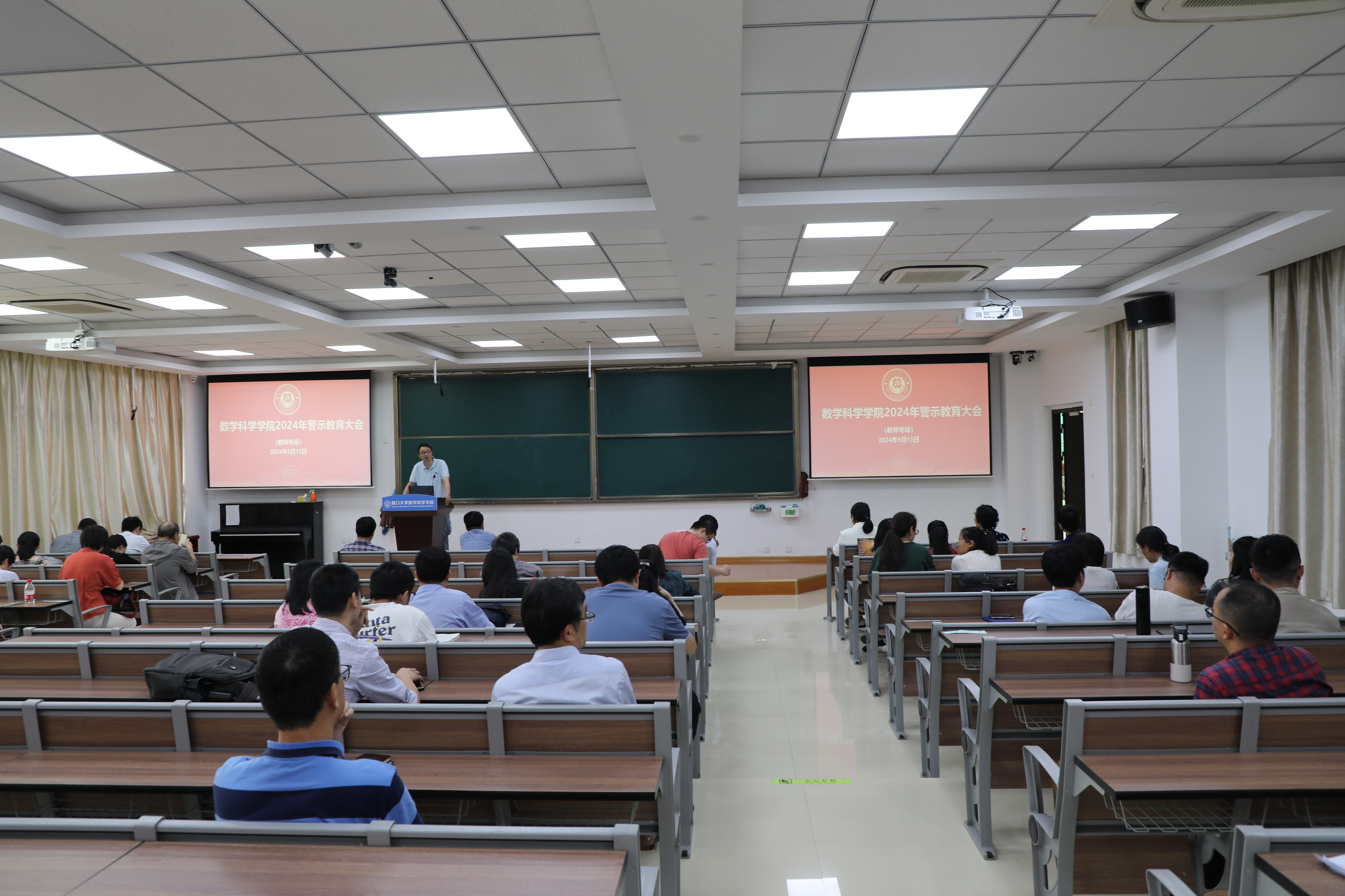 为一体推进党风、师德师风、校风学风建设,营造积极健康、干事创业的政治生态和育人环境,5月13日,数学科学乐竞体育-中国一站式服务官网分别在实验楼106报告厅和实验楼206报告厅召开2024年度警示教育大会,深刻剖析违纪典型案例,强化警示震慑,推动党纪学习教育走深走实。大会分教师党员和学生党员两个专场进行。