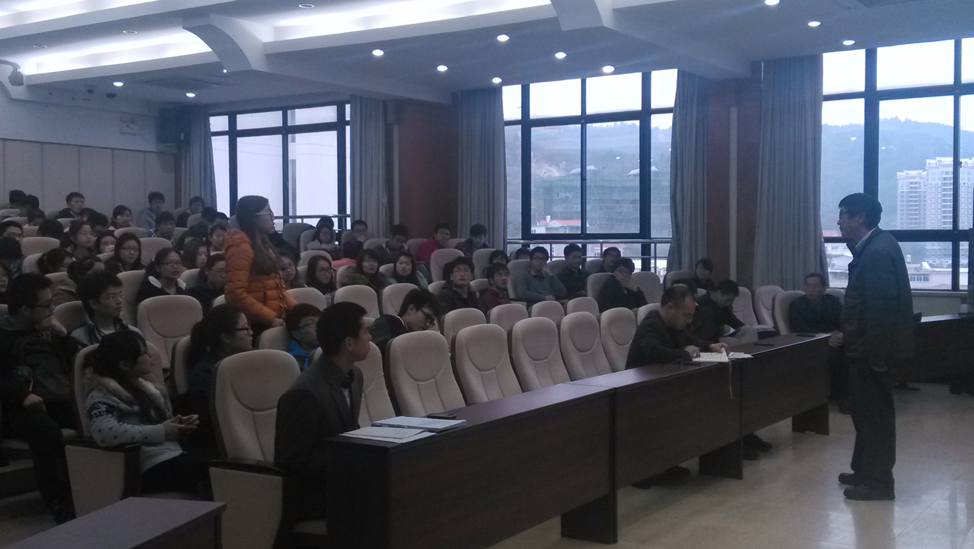 首先,钱建国副院长向同学们介绍了本科生教学方面的工作。他介绍了分管本科生教学的各位老师的职责,刘轼波老师负责本科生的教学计划和学分要求,黄荣坦老师负责本科生的毕业审核事宜,杜魁老师负责保研工作以及基地班的管理,黄晨龙老师负责本科生教学的日常管理工作。他指出,为更加方便、规范同学们的办事流程,同学们要关注乐竞体育-中国一站式服务官网网站的办事指南,要求同学们严格按照办事指南的程序办事,提醒同学们多关注乐竞体育-中国一站式服务官网网站本科生教学栏目。刘轼波老师向同学们介绍了我院教学计划和学分要求,并提醒大家及时核查所修学分以及将要学习的课程。黄荣坦老师介绍了往届毕业生的毕业情况,通过数据的分析警示大家,让同学们对自己的大学生涯乃至人生进行合理的规划,强调态度决定一切,在没有毕业“清考”情况下,要求同学们端正态度。随后,负责基地班管理工作的杜魁老师向11级同学介绍了有关推免保研、校际交流的各项工作,并给出了很多非常有意义的建议。