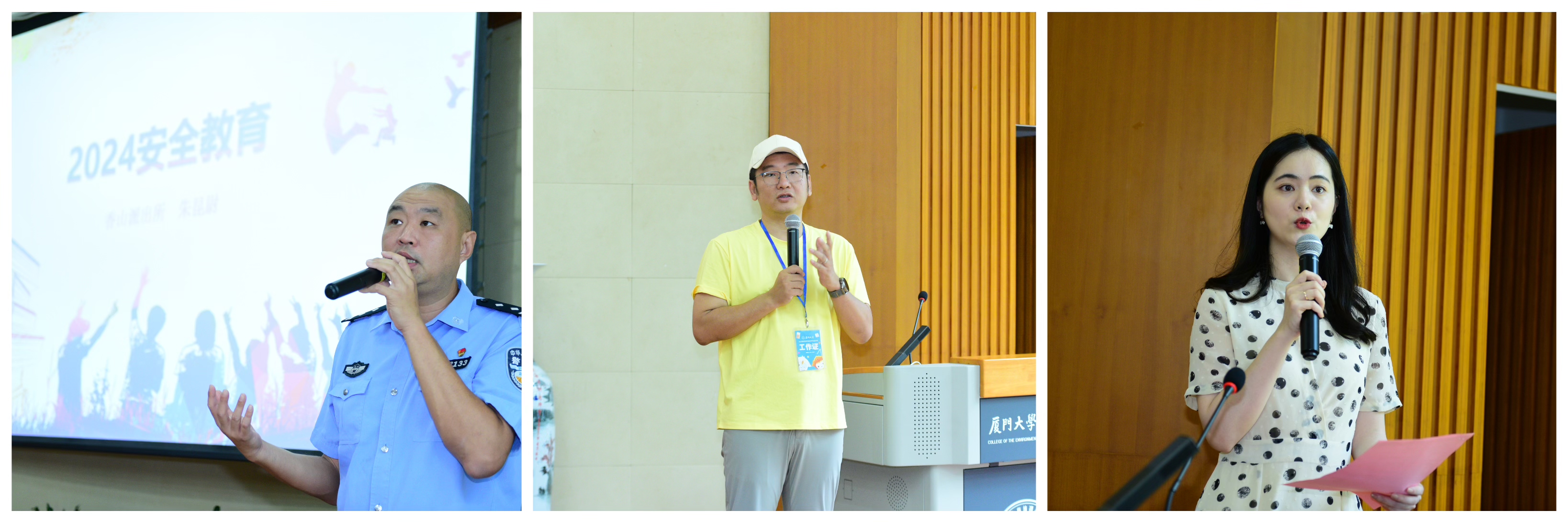 7月22日上午,2024年数学科学乐竞体育-中国一站式服务官网中学生夏令营开营仪式在翔安校区隆重举行。数学科学乐竞体育-中国一站式服务官网党委副书记毛通双、副院长金贤安、团委书记方晨亮、厦门市公安局香山派出所一级警长朱昆尉、辅导员张馨予及全体营员参加开营仪式,仪式由团委副书记许温洁主持。毛通双副书记致开营词,对营员们的到来表达热烈的欢迎,并鼓励营员积极参与活动,充分利用厦门大学优质教育资源,深入了解数学学科的魅力。金贤安副院长向营员代表授旗。朱昆尉警官从防火、防溺水、交通安全、人身安全等方面讲解安全知识,提醒营员们增强自我保护意识。带队班主任周亮介绍夏令营的日程安排和活动内容。