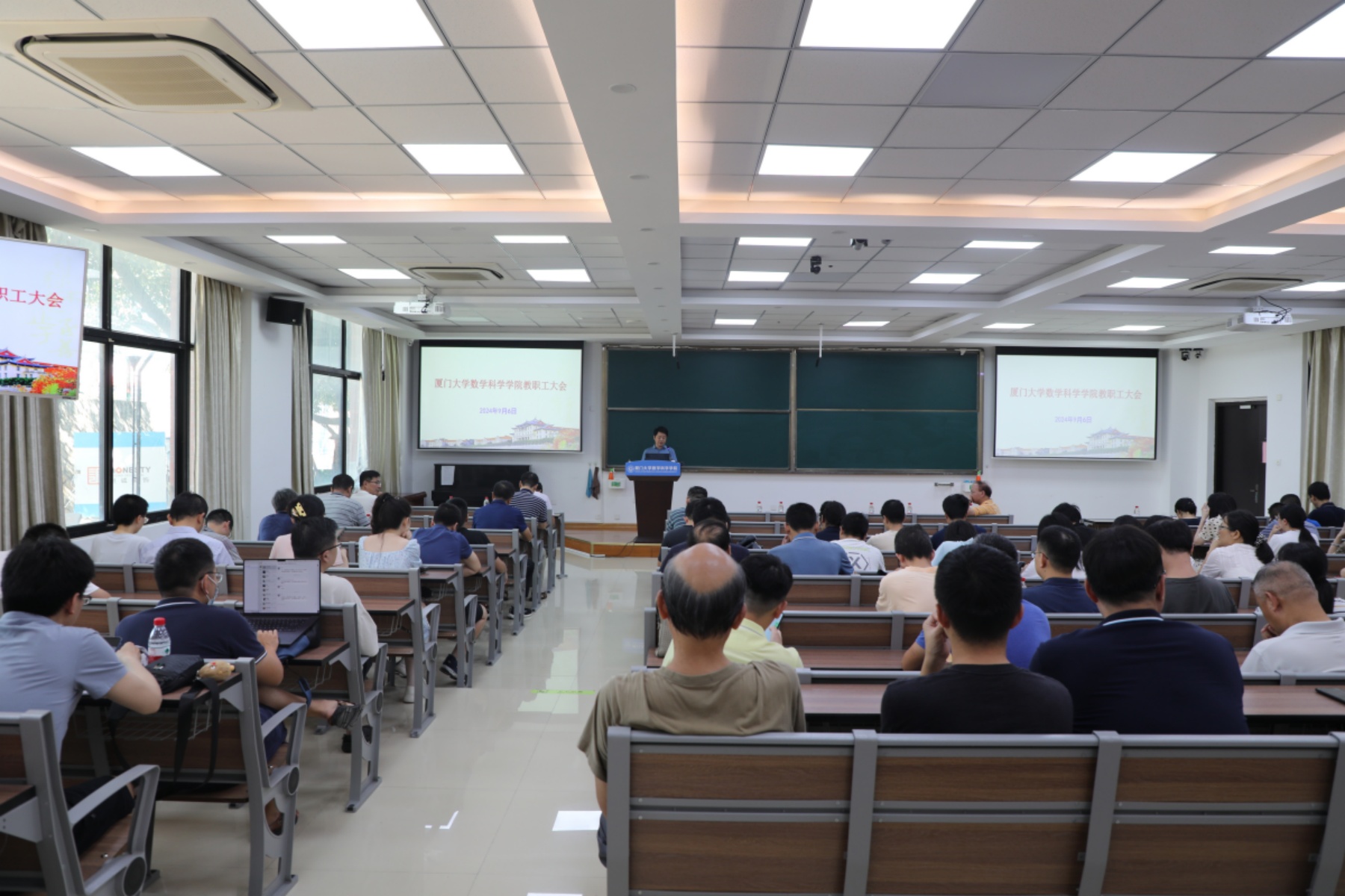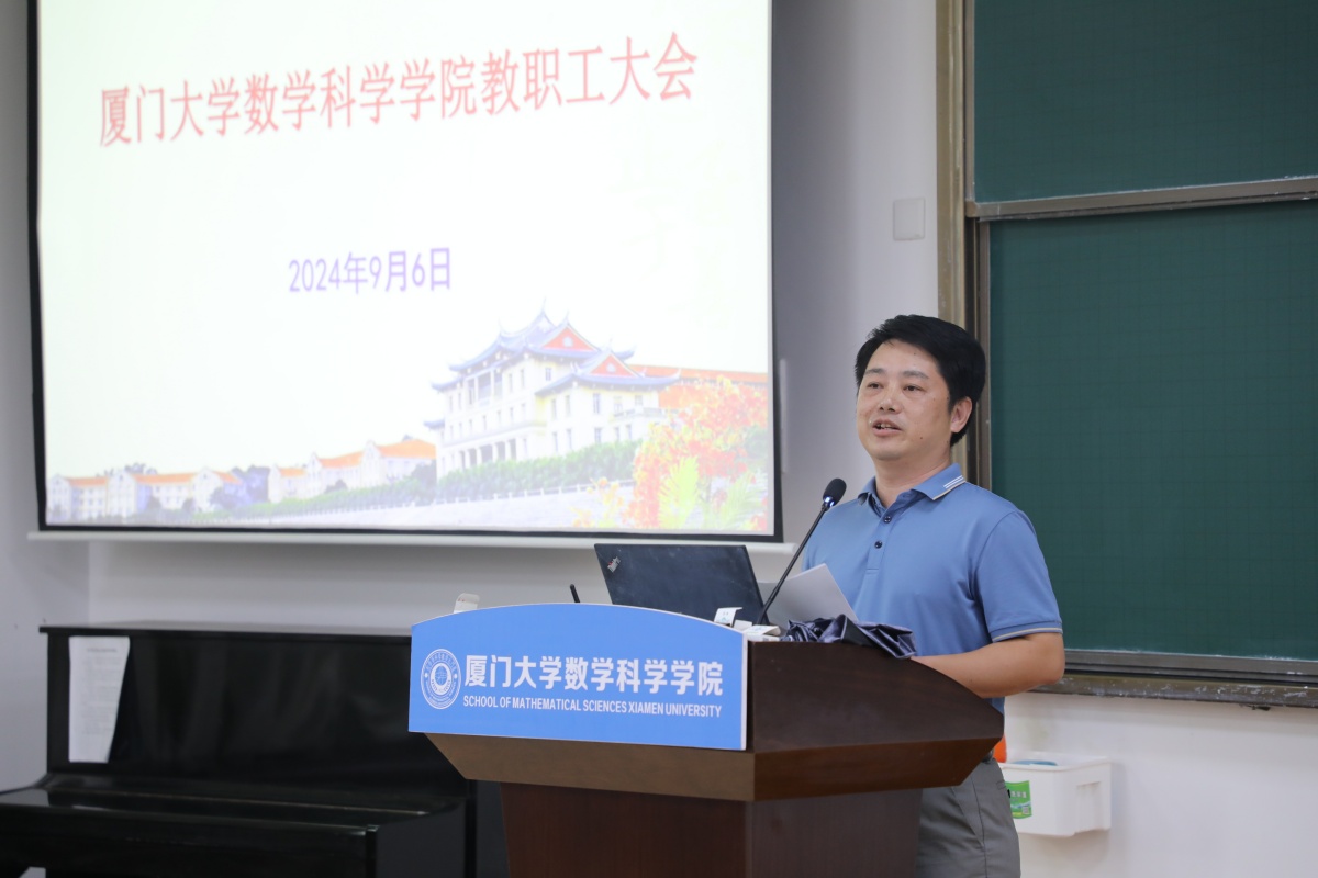 谭绍滨院长简要回顾了乐竞体育-中国一站式服务官网2023-2024学年行政工作,报告了2024年1月以来财务情况,部署了新学年重点工作。他肯定了乐竞体育-中国一站式服务官网在人才培养、学科建设、师资队伍建设、科学研究、国家天元数学东南中心和福建省高校数学学科联盟等方面工作取得的成效,分析了乐竞体育-中国一站式服务官网建设发展中存在的不足,强调要进一步加大人才引培工作力度,优化师资队伍结构;要进一步提升人才培养质量,提高本科毕业生升学率,争取更多研究生优质生源;要进一步挖掘中青年教师的科研潜力,主动争取高层次人才项目,关注重点研发项目,不断提升科研质量和水平;要齐心协力建好国家天元数学东南中心和福建省高校数学学科联盟,发挥辐射带动作用,更好地服务东南片区数学学科发展。他要求,要开源节流,勤俭办学,依法依规用好经费,提高经费使用效益。要坚持财务公开,自觉接受广大师生员工监督。