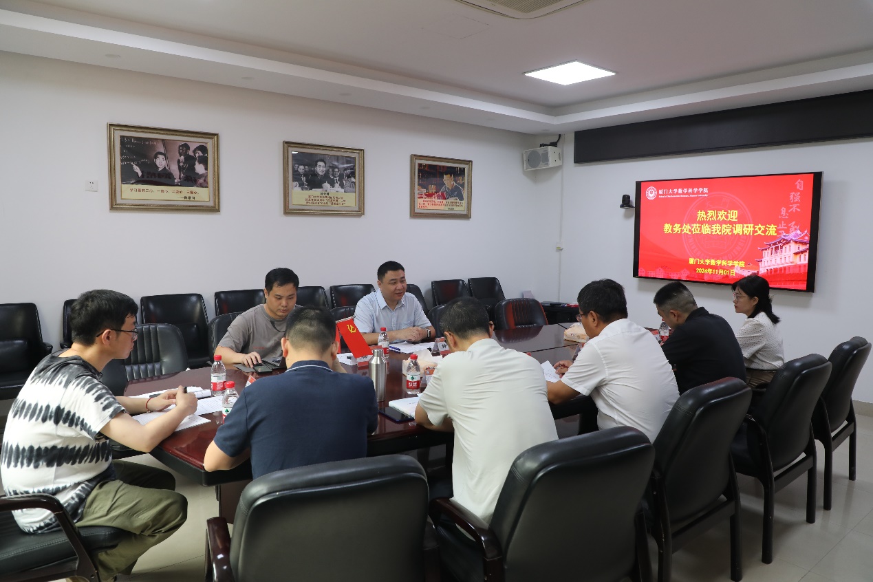 2024年11月1日,教务处副处长钟杰、学务科副科长杨炎一行到数学科学乐竞体育-中国一站式服务官网调研本科教育教学工作。乐竞体育-中国一站式服务官网分管副院长金贤安教授、公共数学教学部主任张文教授、信息与计算数学系杜魁教授、数学与应用数学系副主任吴伟胜教授、公共数学教学部副主任吴聪敏副教授、教学秘书黄晨龙参加本次调研会。
