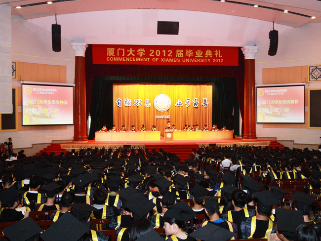 校党委副书记陈力文宣读了表彰2012届优秀毕业生的决定。副校长孙世刚宣读了学位授予决定。在激昂的校歌声中,毕业生们依次上台,主席台的领导和嘉宾为他们颁发学位证书并援正流苏。接受学位证书的毕业生们在小合唱团手持鲜花的夹道欢送之下,沿着会堂正中的红地毯,从大会堂正门设置的“毕业之门”走出,预示着步入人生新的阶段。