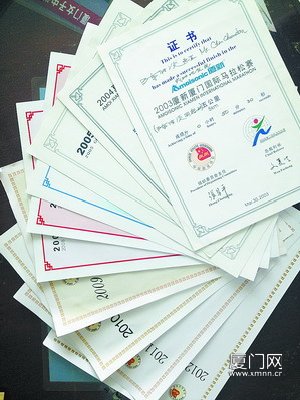 这些记录了80多岁老人长跑经历的证书。在今年1月7日举行的2012年厦门国际马拉松赛上,已经91岁高龄的陈传淡还出现在选手队伍中。
