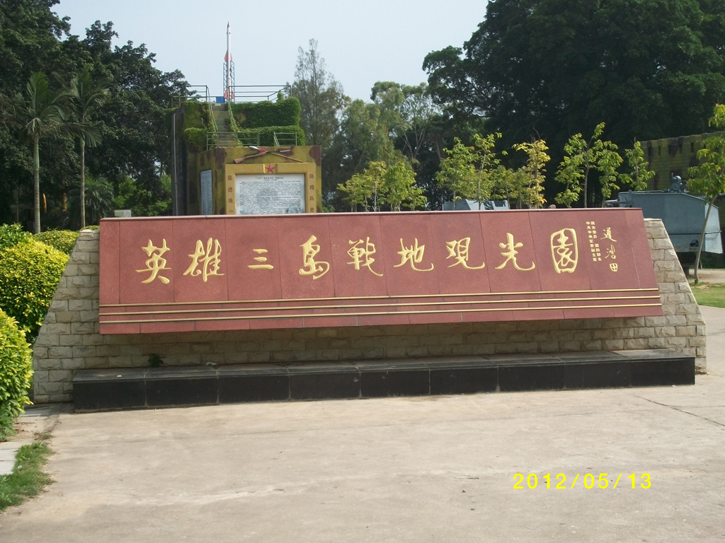 英雄三岛是指大嶝、小嶝、角屿三岛,因其1958年八二三炮击金门的辉煌战绩,被中央军委授予"英雄三岛"的光荣称号。战地观光园昔日是前沿阵地,如今成为以祖国统一大业为主题,以战地观光为内容的爱国主义教育,国防知识教育基地。园内设有英雄雕塑广场、八二三炮战纪念馆、战地坑道、世界之最大喇叭、武器模型馆、红色记忆典藏馆、祖国和平统一展览馆等景点。