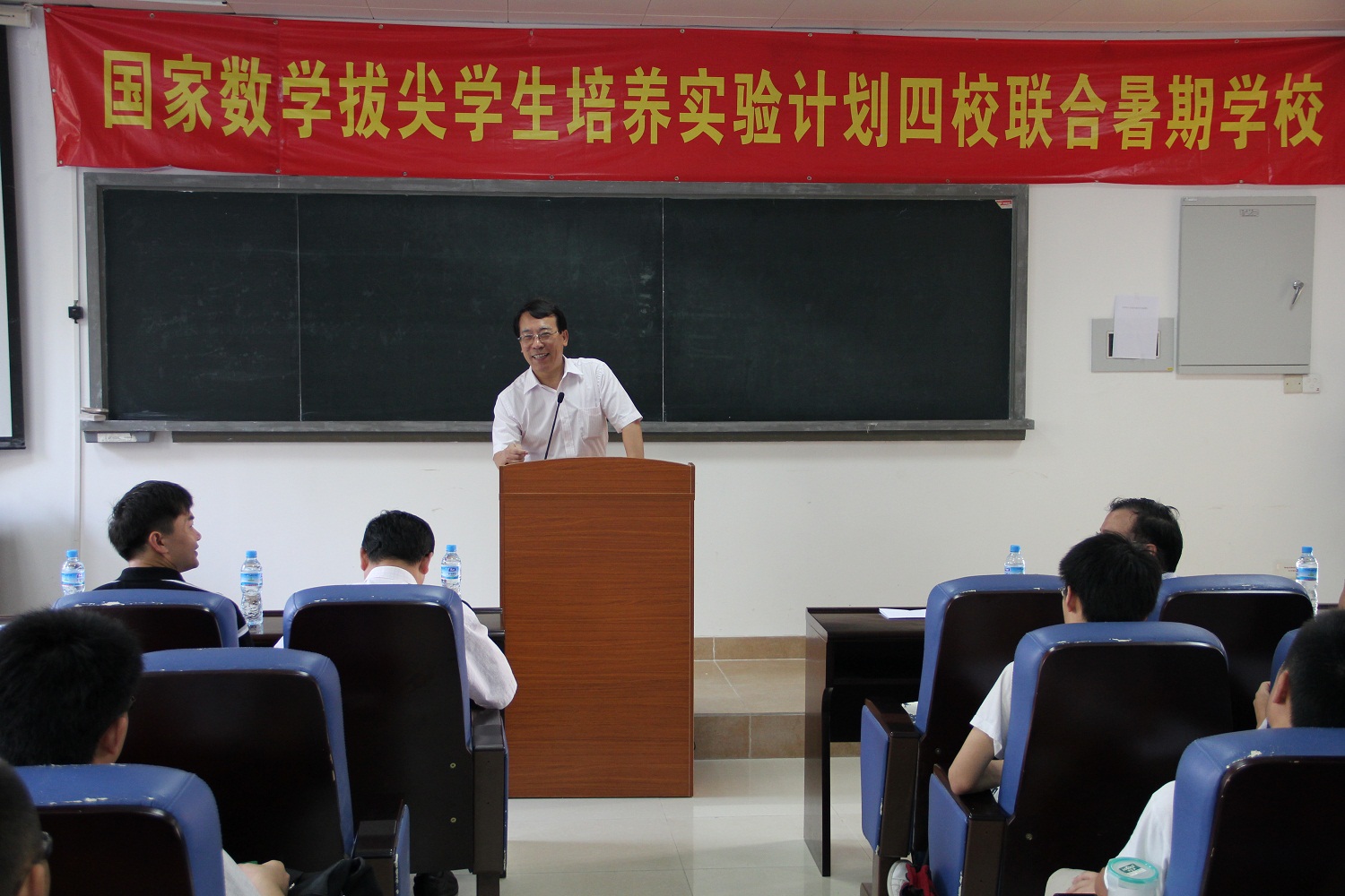 7月25日上午,由北京大学、南京大学、四川大学、厦门大学联合举办的国家数学拔尖学生培养试验计划四校联合暑期学校开学仪式在我校海韵校区实验楼105报告厅举行。厦门大学副校长邬大光教授、教务处处长谭绍滨教授,数学科学乐竞体育-中国一站式服务官网院长林亚南教授、党委书记张明智、党委副书记郑诚明、闽江学者邱建贤教授,本次暑期学校所有学员参加了开幕式。仪式由我校数学科学乐竞体育-中国一站式服务官网副院长邱春晖教授主持。