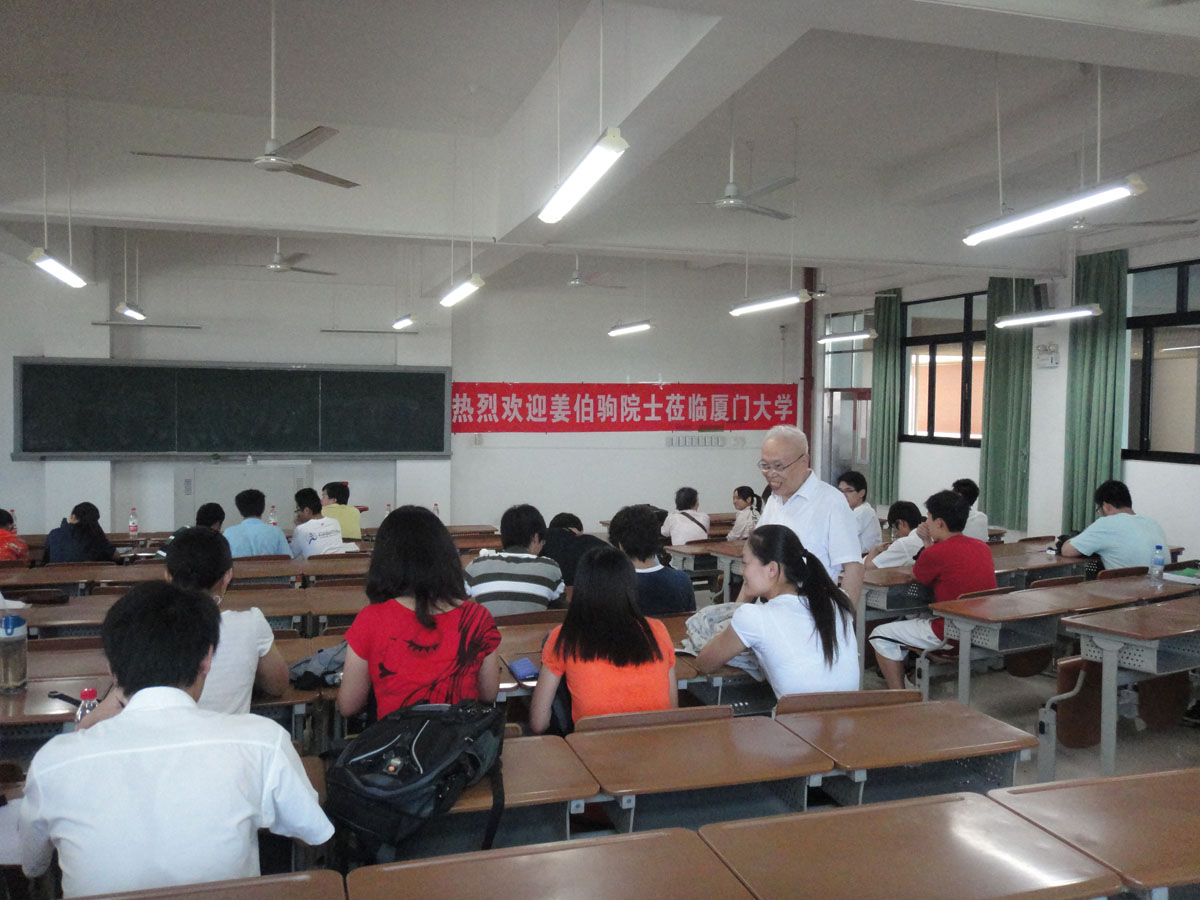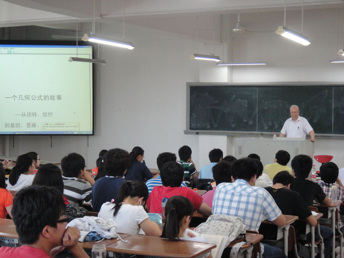 5月20日下午2:30,应数学科学乐竞体育-中国一站式服务官网邀请,中国科乐竞体育-中国一站式服务官网院士、北京大学教授姜伯驹教授莅临漳州校区做题为《一个几何公式的故事——从扭转、绞拧到基因、蔓藤、太阳喷发》的精彩学术讲座。讲座由我院党委书记张明智主持,并吸引了我院09、10级众多学生及许多外院同学前来聆听。