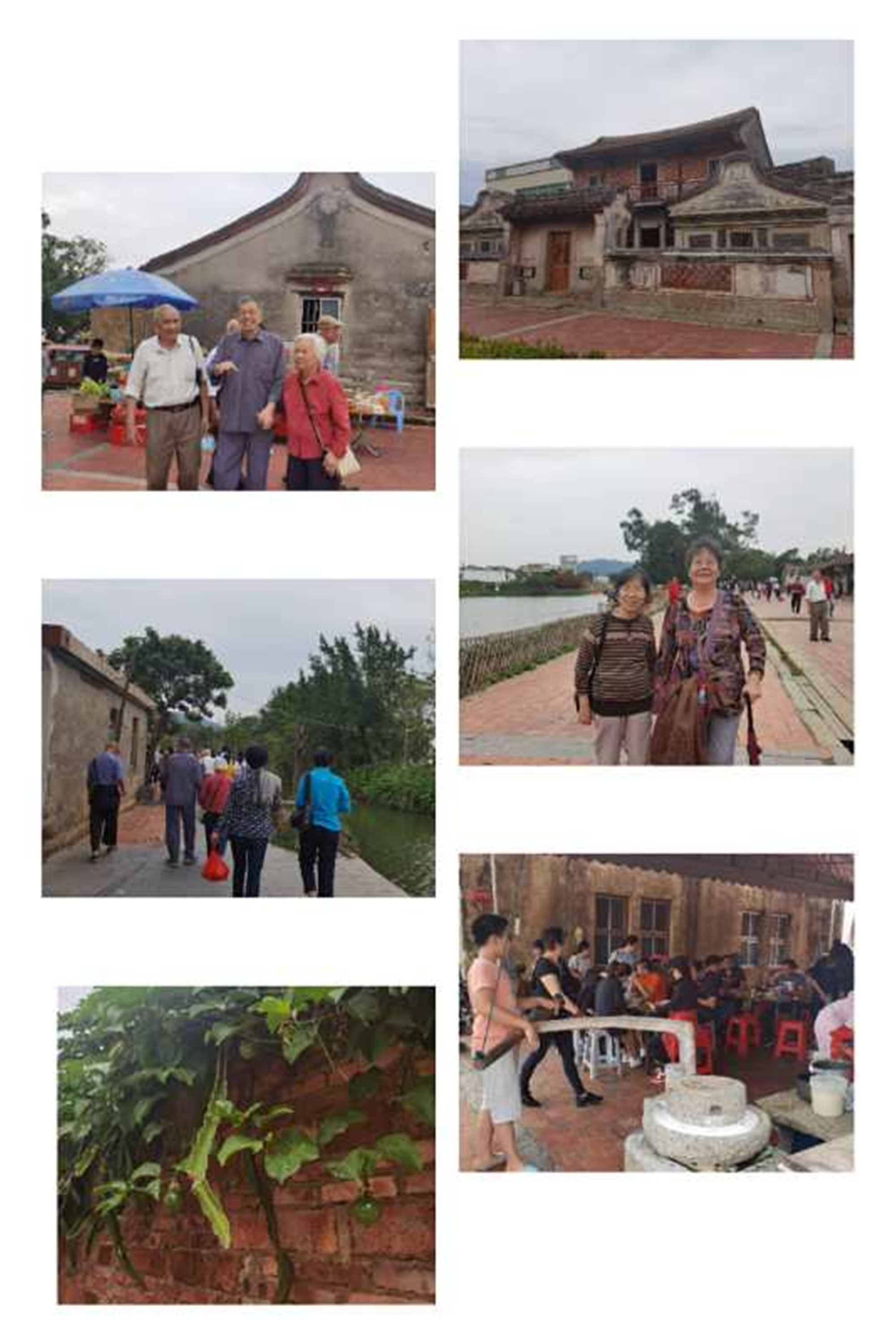 一路聊着、笑着,不知不觉来到了目的地。先到美山村参观古建筑,短暂停留之后,再转道埭美村参观民居古厝群。据说埭美古厝建于明朝,至今有600多年的历史了。古厝群傍水而建,布局呈轴对称排列、多层次进深、前后左右有机衔接,严谨整齐,好似一个大“矩阵”。屋顶多为硬山式曲线燕尾脊,红瓦屋面,石砌墙体,装饰工艺极为精湛,木雕、砖雕、泥塑在梁、拱、窗花等构件上的运用令人叹为观止。呼吸着乡村的清新空气,闲游在古厝群里石板巷中, 推推磨面的磨坊,品尝闽南地道小吃锅边糊、麻糍。看着老人们沐浴在暖阳下闲坐,孩子们吹着七彩泡泡、吮着麦芽糖、相互追逐嬉戏,不禁让人想起辛弃疾的《清平乐·村居》---“茅檐低小,溪上青青草。醉里吴音相媚好,白发谁家翁媪? 大儿锄豆溪东,中儿正织鸡笼。最喜小儿亡赖,溪头卧剥莲蓬。”