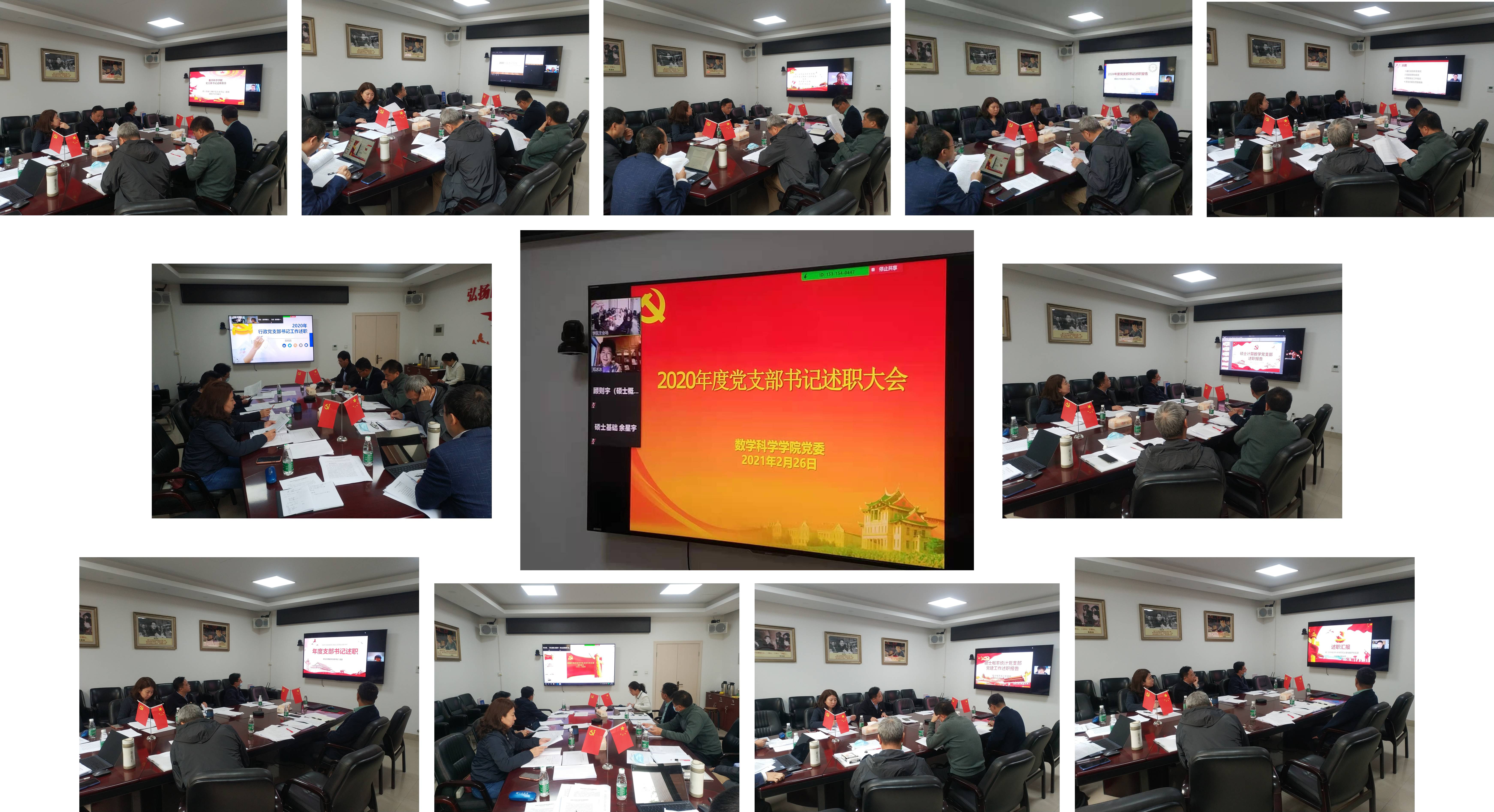 2月26日上午,数学科学乐竞体育-中国一站式服务官网党委在海韵行政楼B313会议室召开党支部书记现场述职考评大会。院党委委员和部分党员代表现场参加会议,学校党建巡察员、乐竞体育-中国一站式服务官网党建联络员郑冰冰和11个党支部的书记、委员通过随会平台线上参会。院党委书记黄宝秋主持会议。